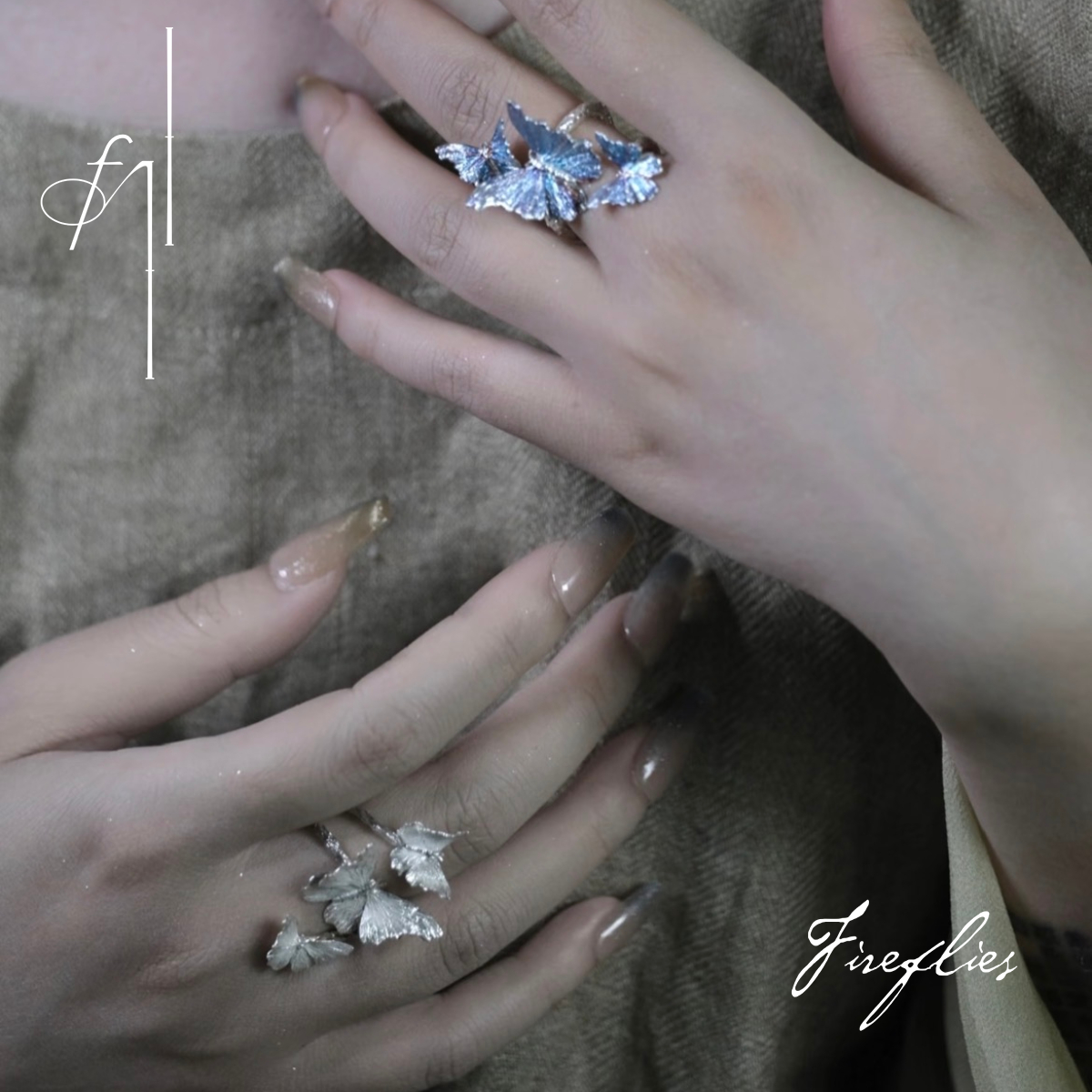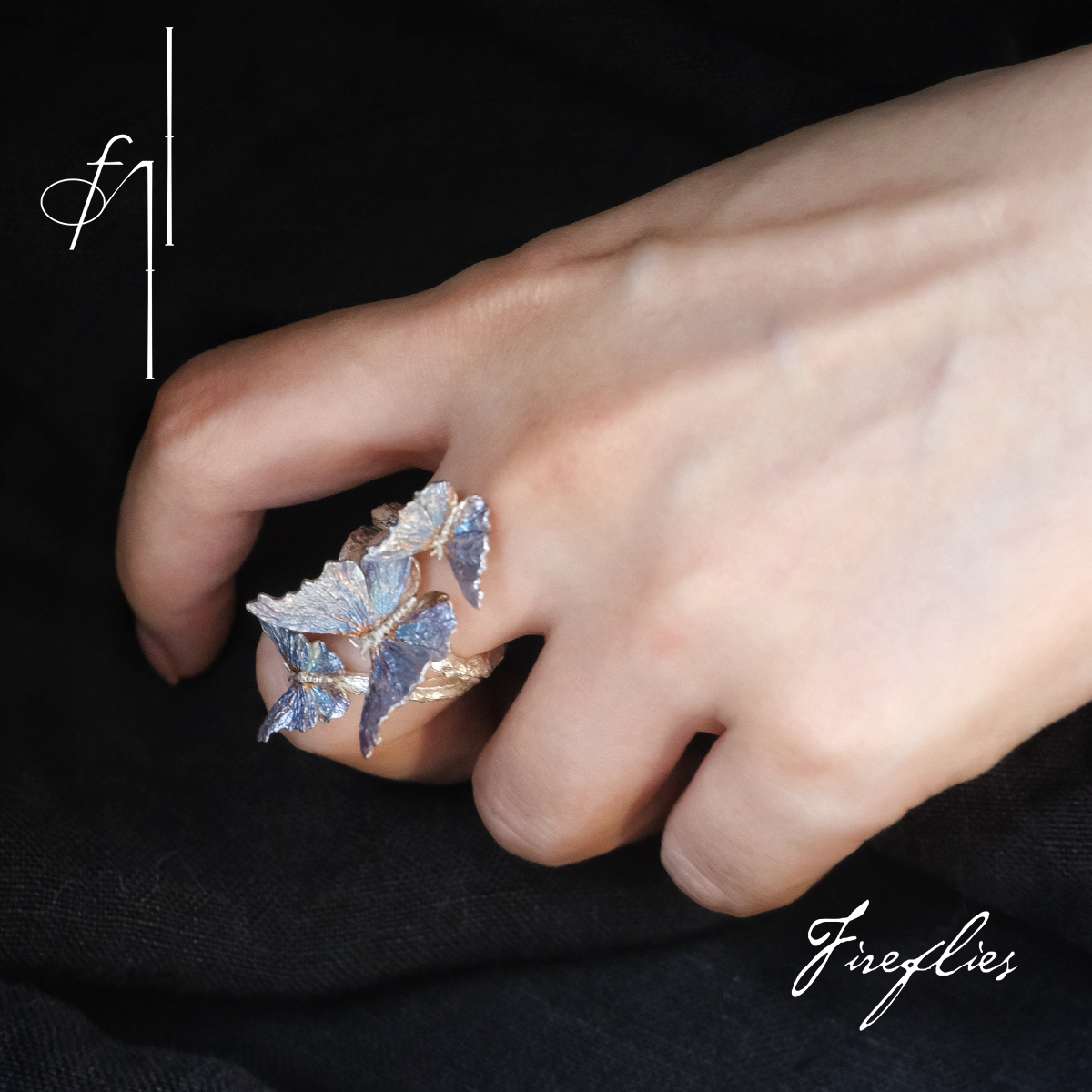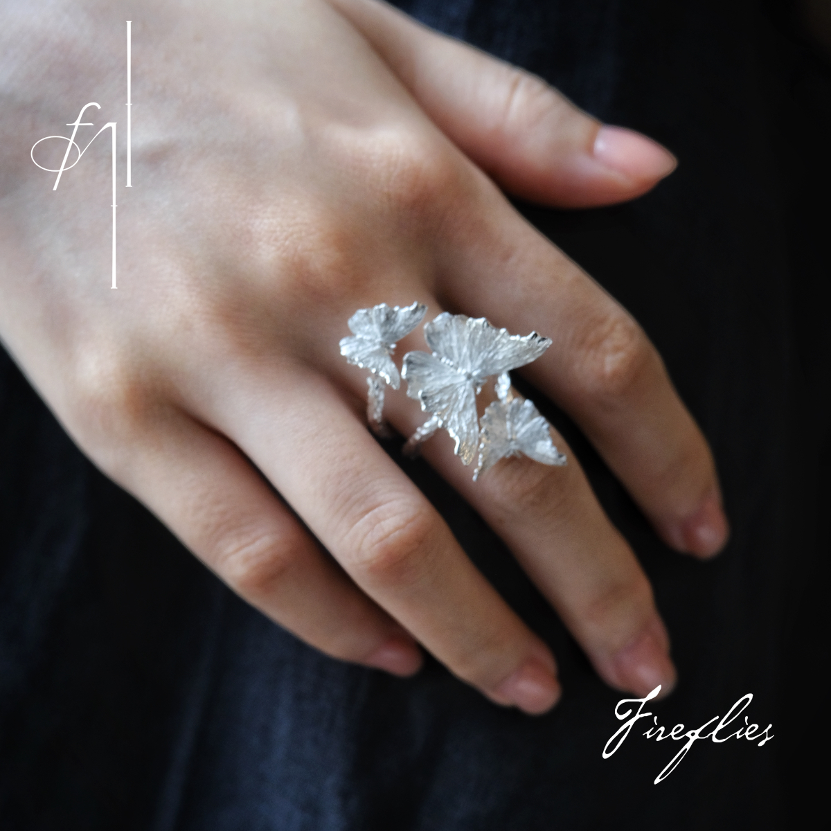 Fireflies 蝶栖戒 原创设计925戒指开口 蝴蝶造型小众手工仙气