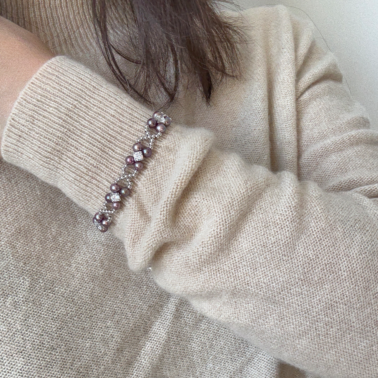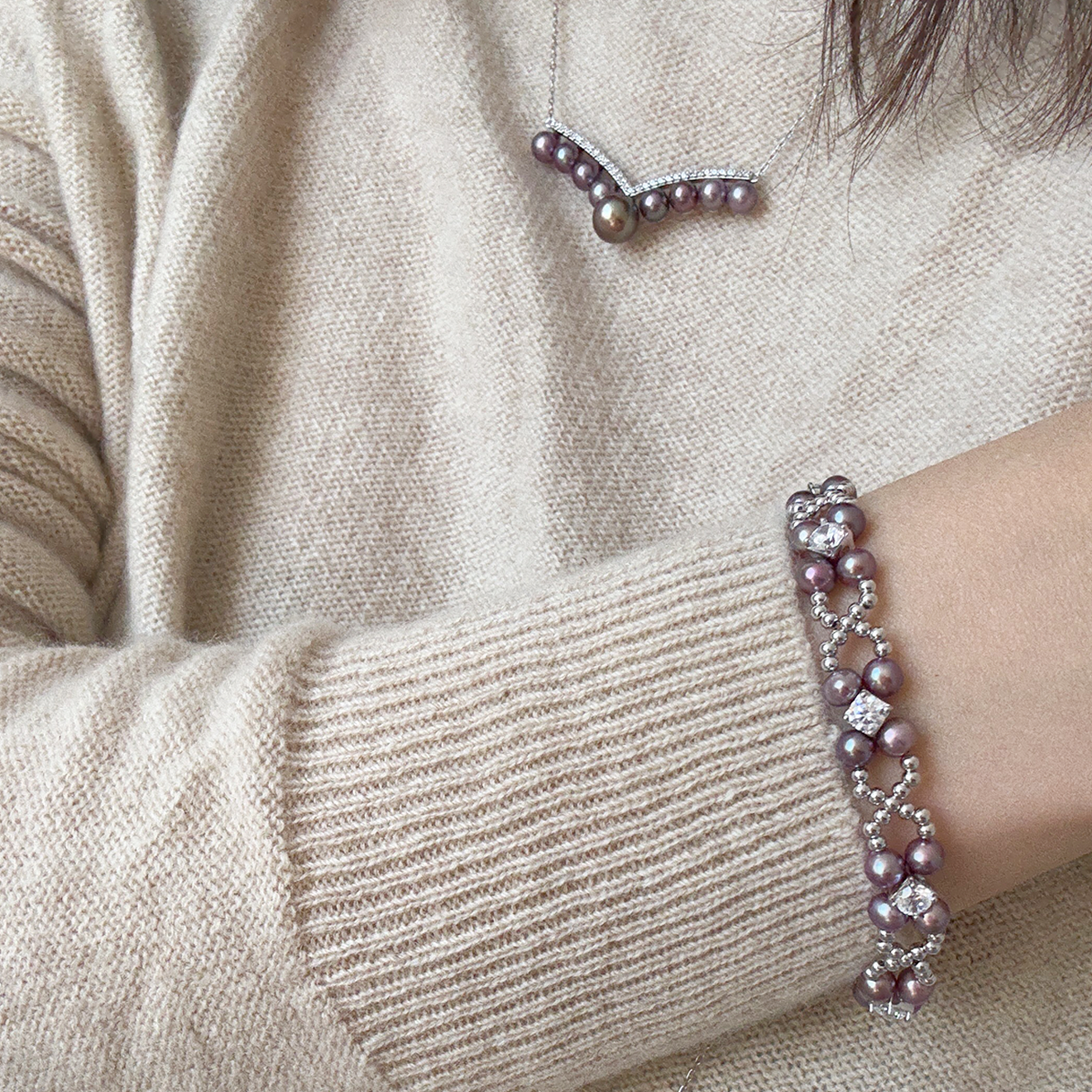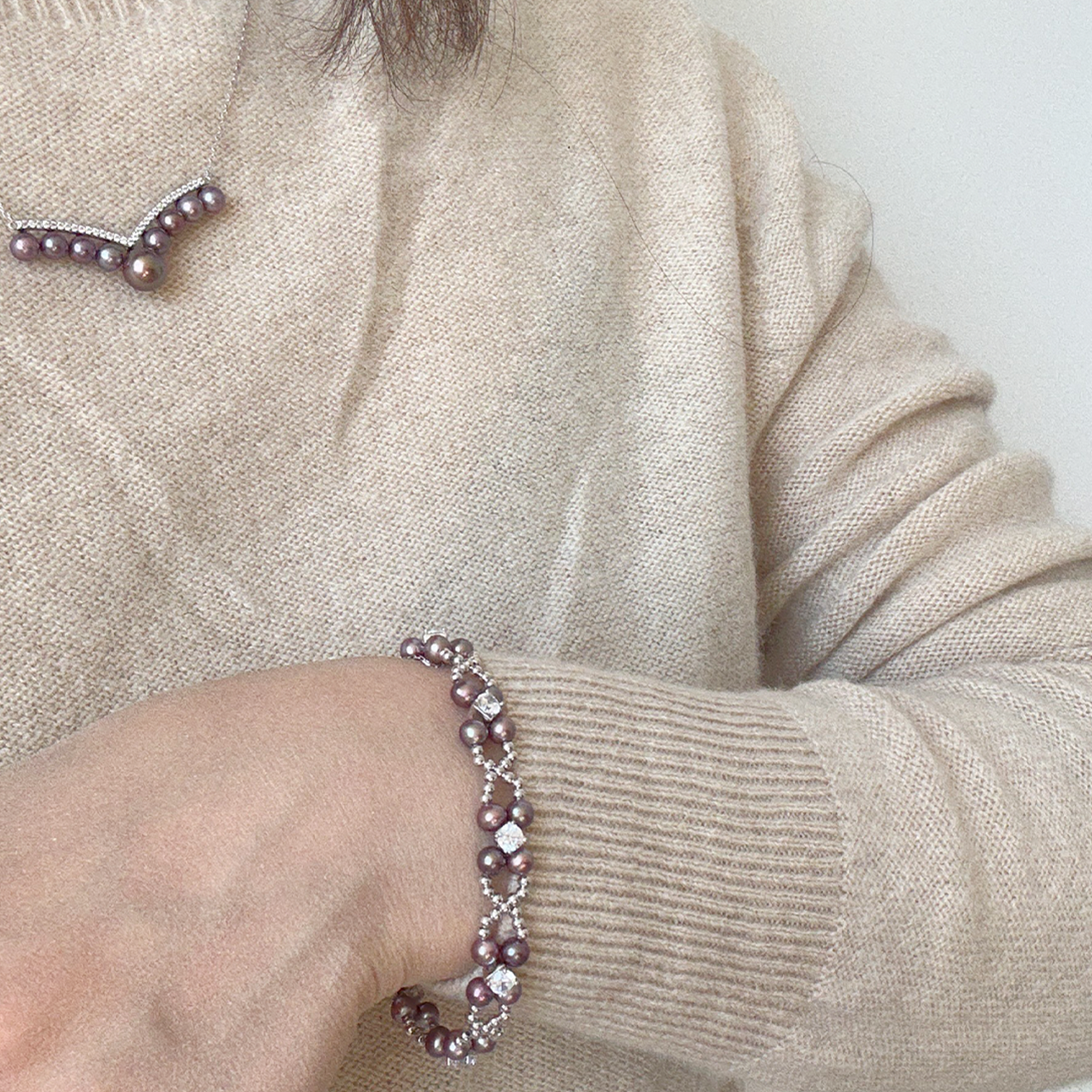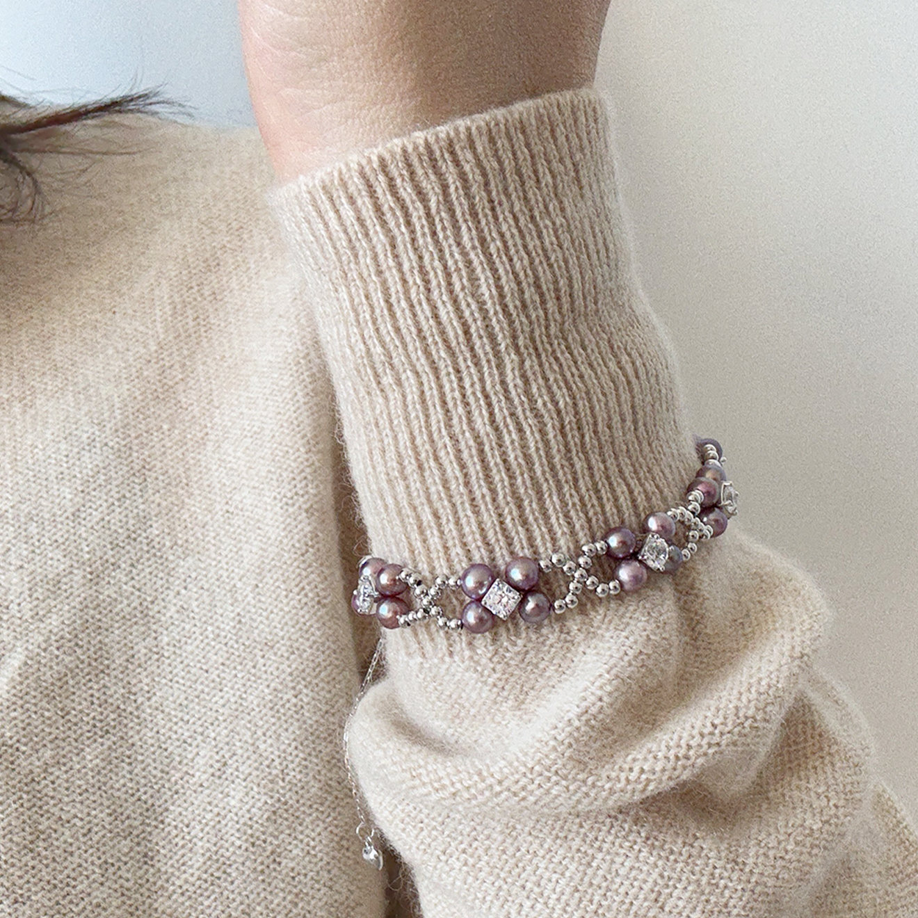 半觉钻钻bling闪优雅编织百搭紫珠珍珠手链