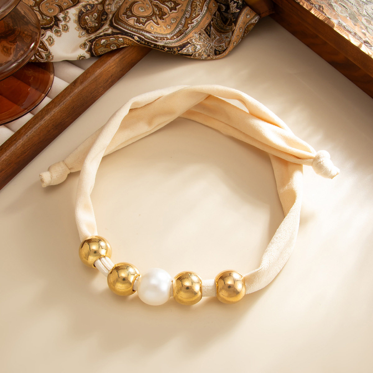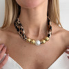 欧美精品饰品 美拉德豹纹丝巾串珠项链 时尚感珍珠CCB圆珠锁骨链