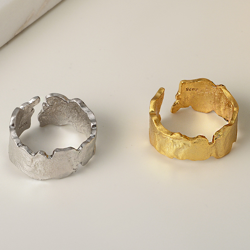日本品质J1037 韩版S925纯银烧皱纹理戒指女ins冷淡风时尚不规则