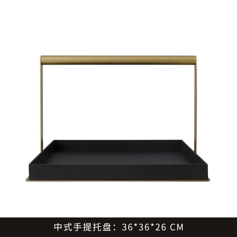 正品新中式意房铁艺方形手提托盘摆件样板家居桌面创软装饰品摆架