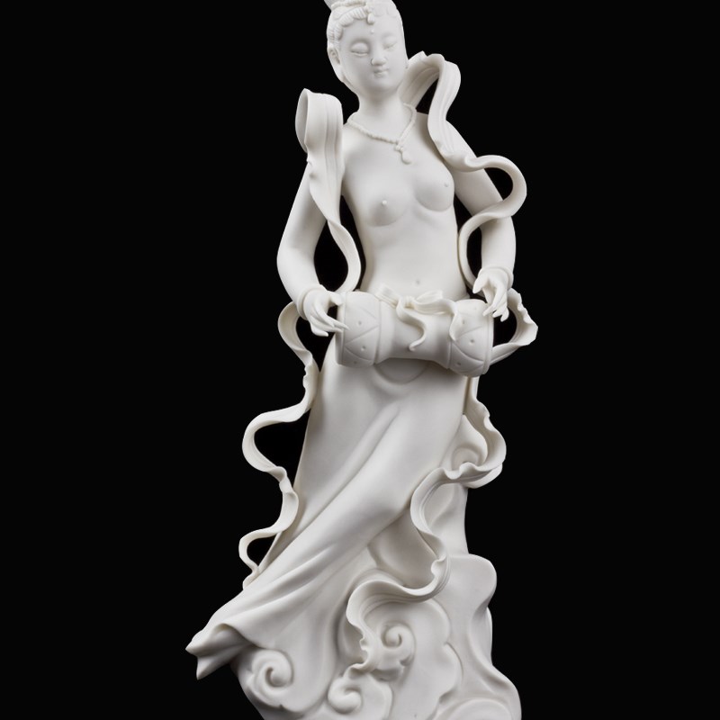 陶瓷人物仕女敦煌飞天瓷雕摆件家居客厅工艺品艺术品电视柜装饰品