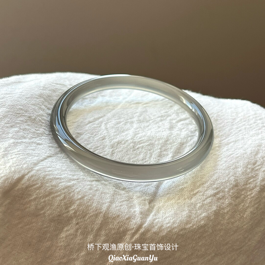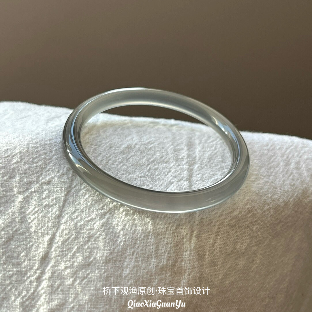 天然冰灰色玛瑙手镯女款冰种玉镯女6mm玉髓高冰透原色无染色正品