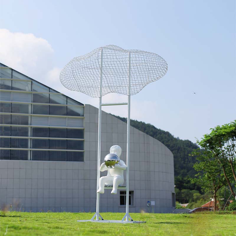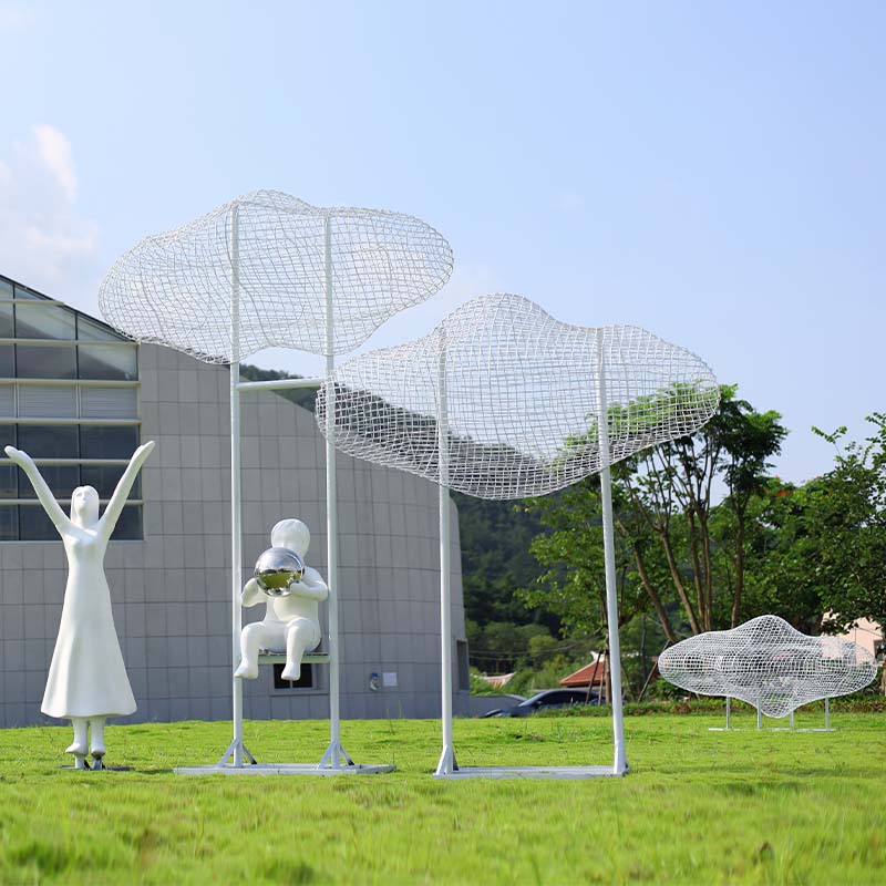 户外金属镂空云朵大型摆件抽象人物园林景观小品不锈钢雕塑定制