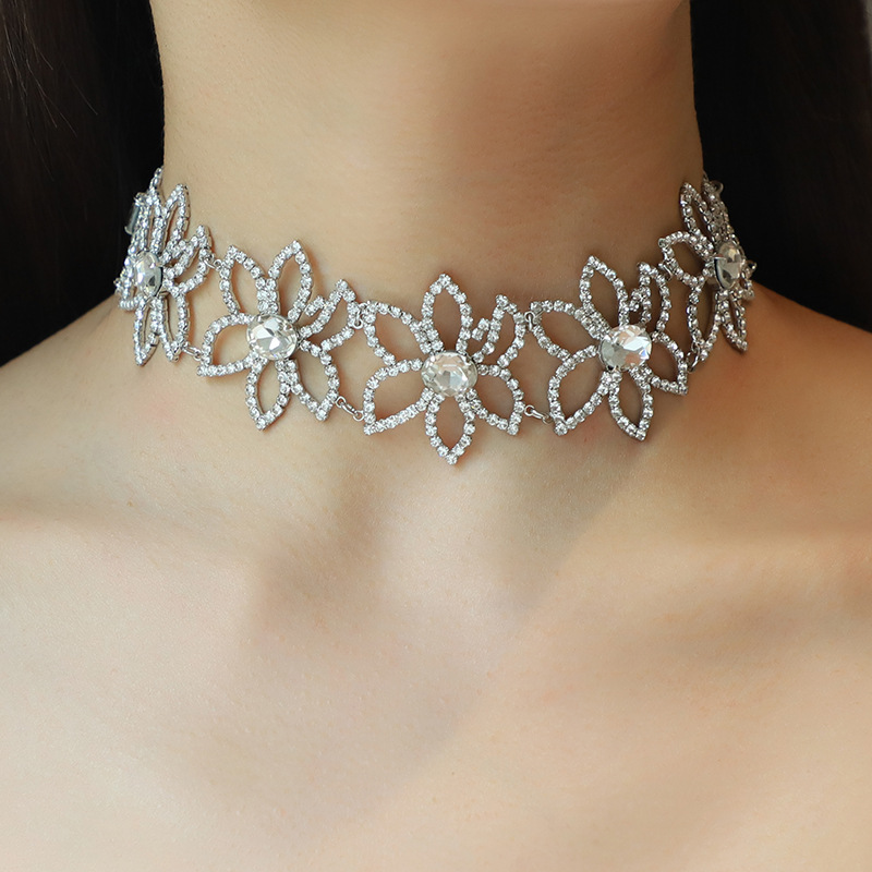 肯杰欧美夸张满锆项链女亚马逊热卖春季钻石花项链铜镶锆精美