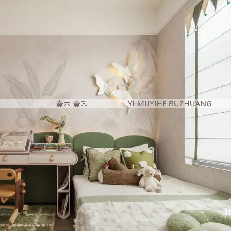 现代绿色系样板间儿童房女孩房创意绘画主题软装饰品搭配桌面摆件