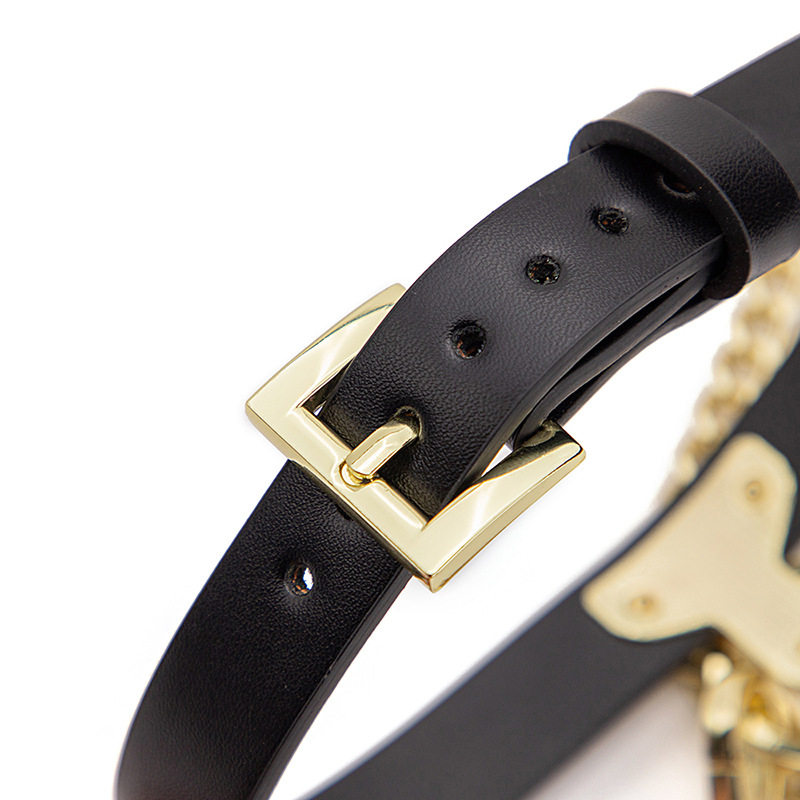 【XXSM】真皮个性颈环项链T型圆环choker黑色项圈狗狗puppy牵引绳
