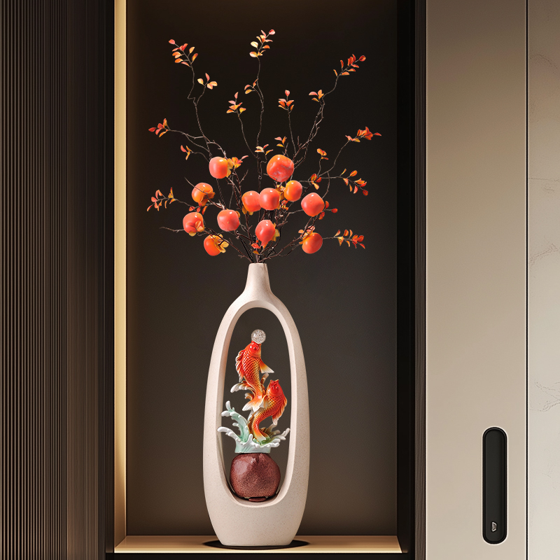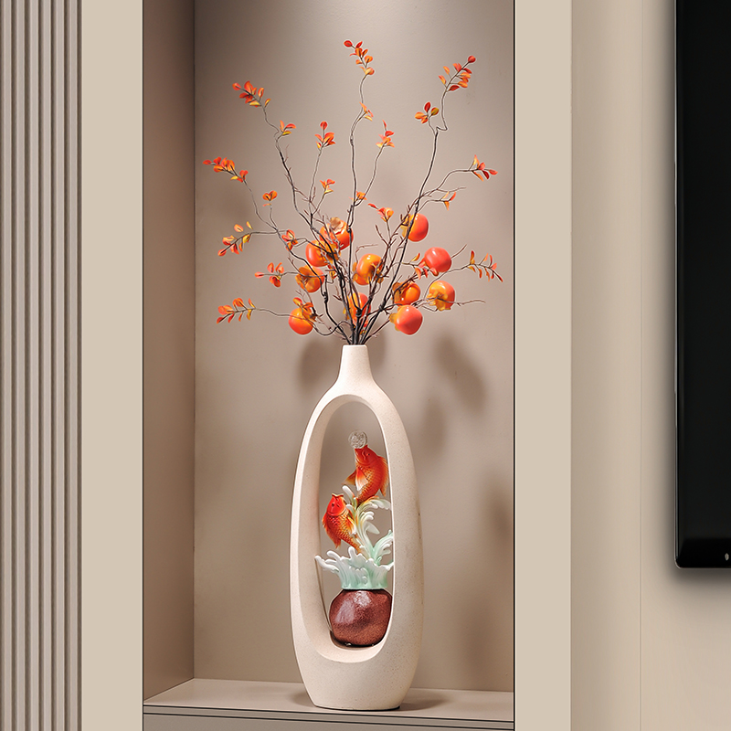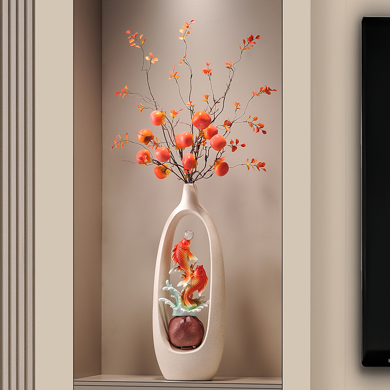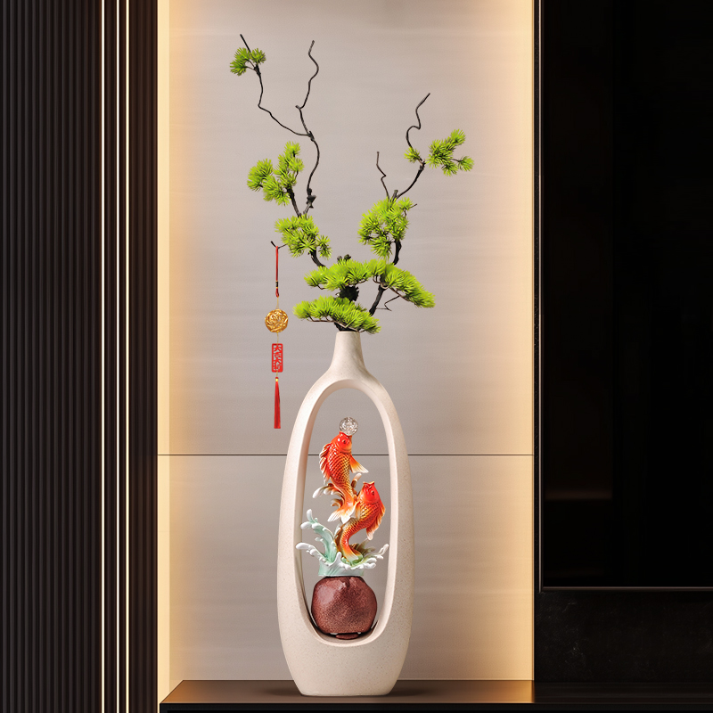 年年有鱼锦锂客厅大型花瓶摆件入门玄关屏风电视柜旁竖高装饰礼品