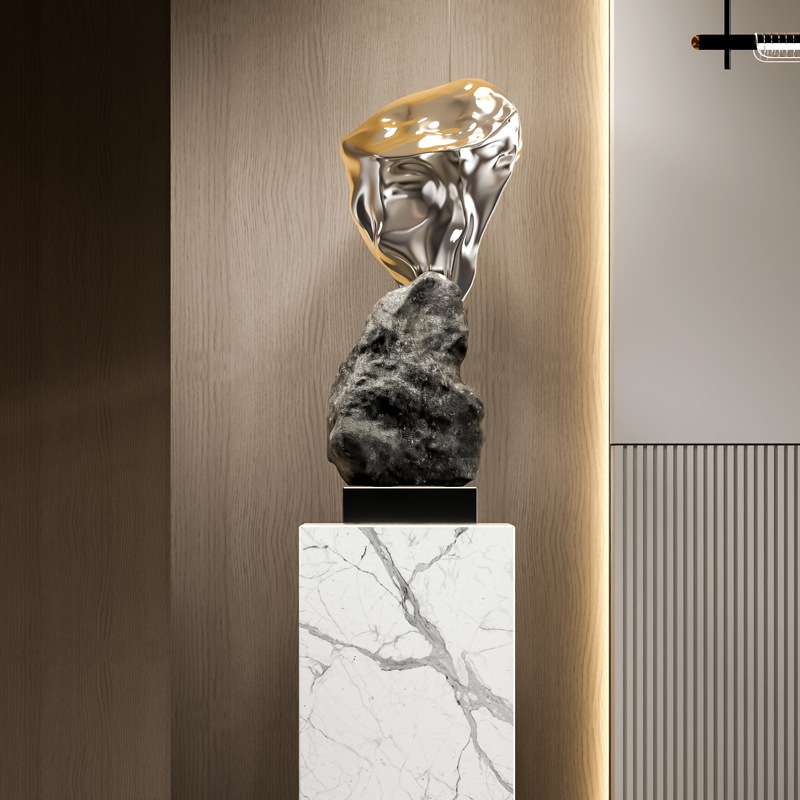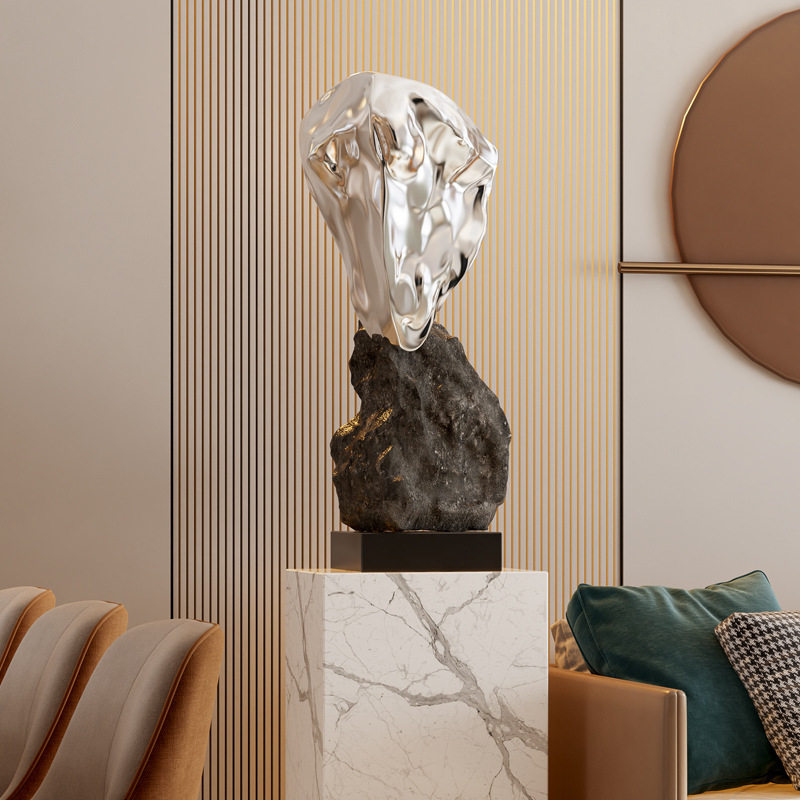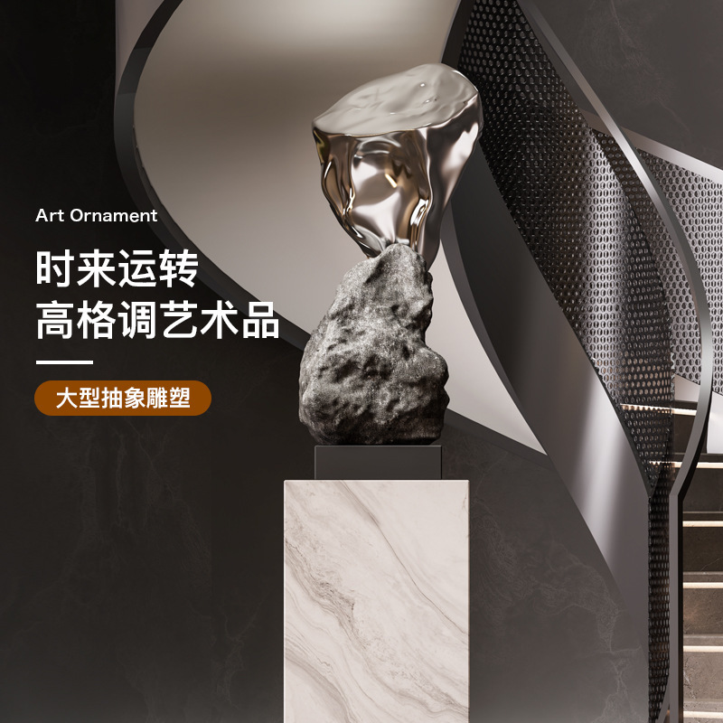 新中式石头假山落地摆件轻奢艺术雕塑公司玄关酒店大堂通道装饰品