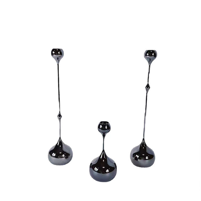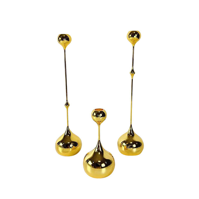 电镀不锈钢烛台j摆件家居餐桌装饰品桌面三件套轻奢金属水滴蜡烛