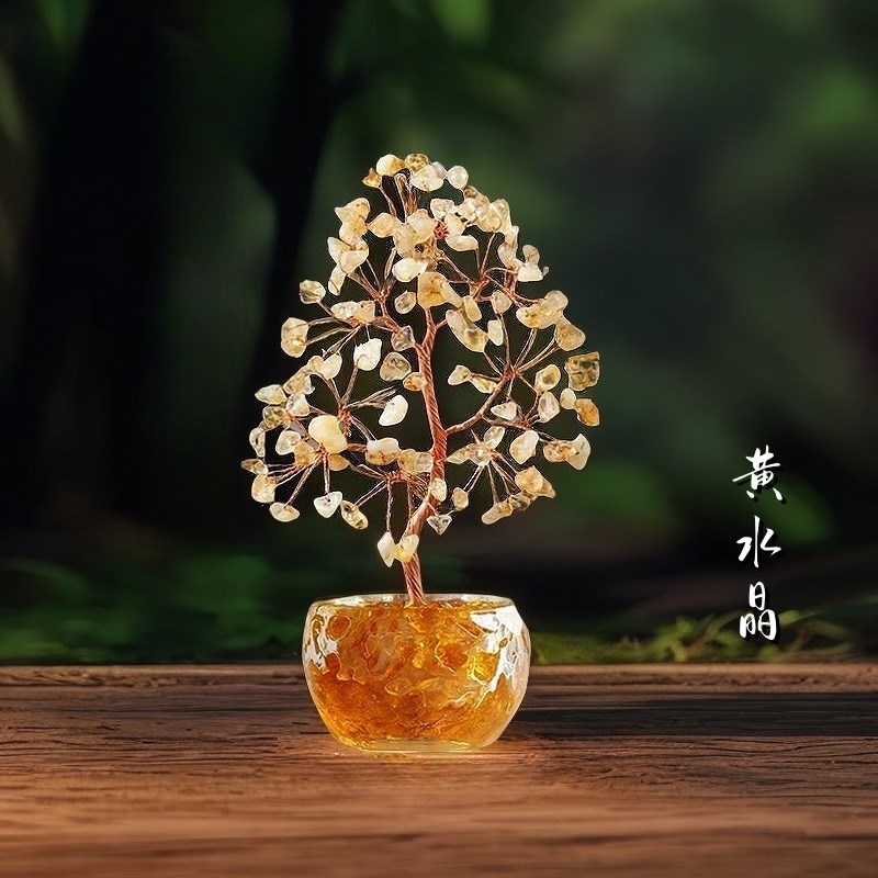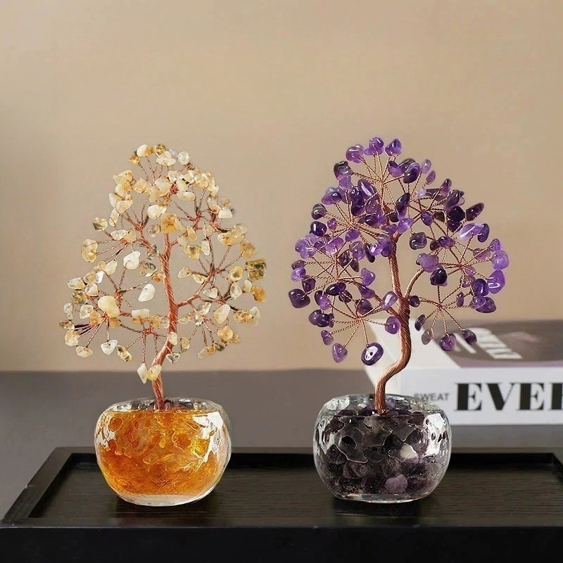天然紫水晶发财树摆件家居客厅办公室桌面工位装饰品创意小摆件