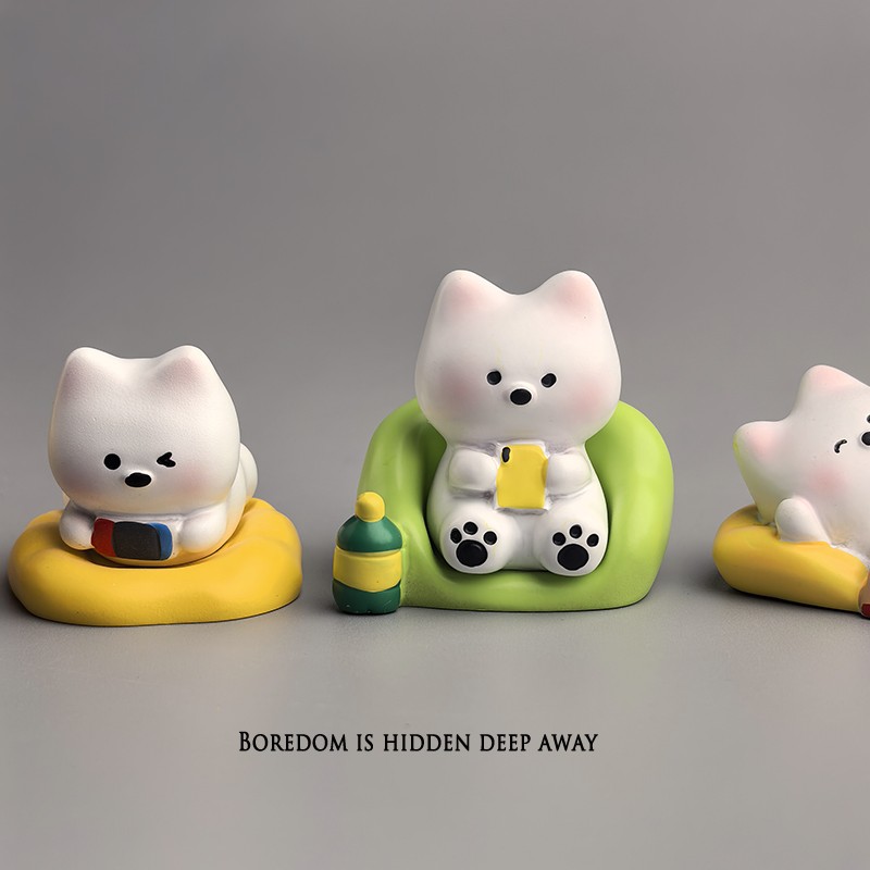 无聊了,摆几个西高地狗狗治愈电脑桌面日式工位办公桌小摆件装饰