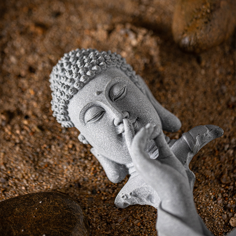 中式释迦牟尼佛佛像摆件青砂石鱼缸造景园艺桌面茶室装饰品如来茶