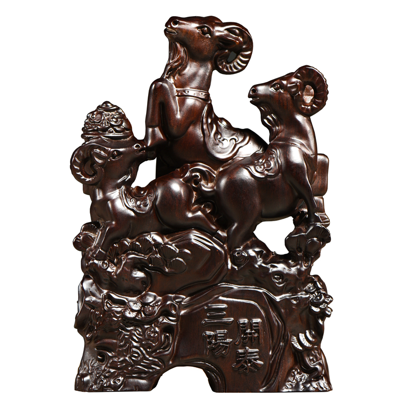 黑檀木雕三羊开泰摆件实木质雕刻三阳开泰新中式家居客厅装饰礼品