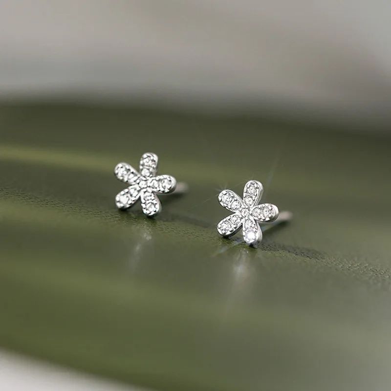 Fashion Small Zircon Plant Stud Earrings For Women Girls Cut