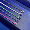 欧美蓝色满钻手链女 925纯银单排镶绿钻石手镯玫红仿真钻手环手串