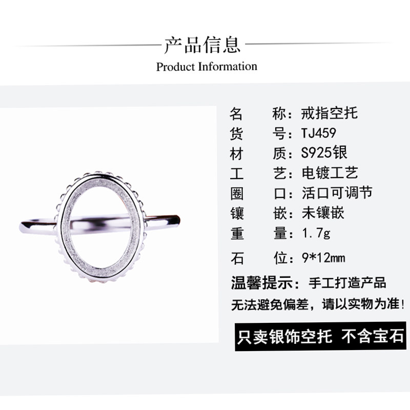 925纯银戒托空托女戒指空托韩版蜜蜡空托蜜蜡和田玉纯银戒托9*12