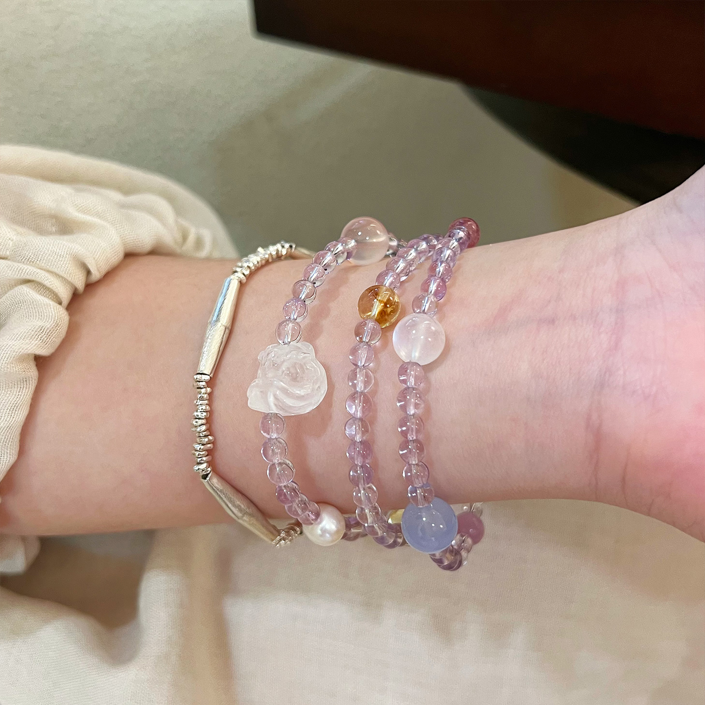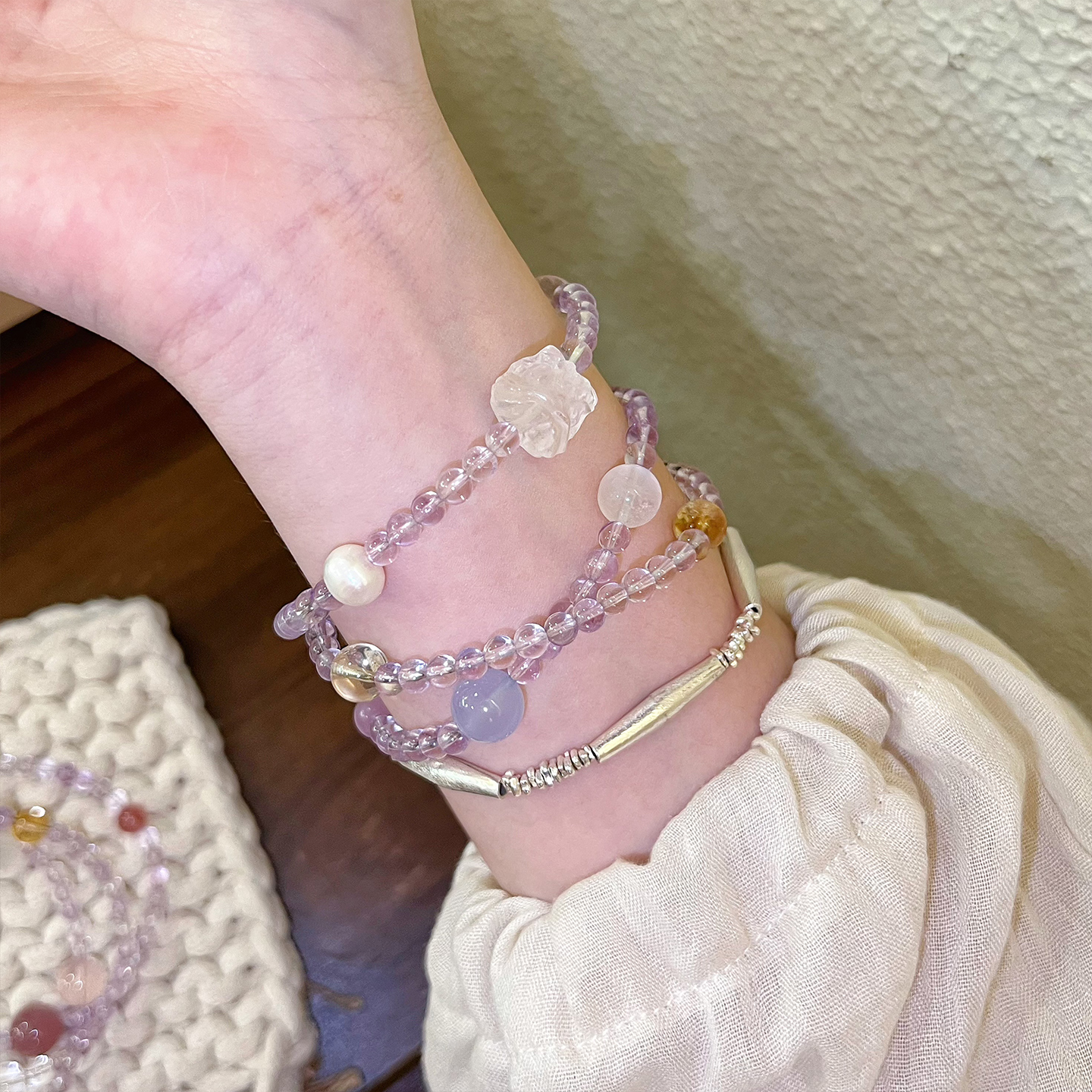 【袅袅】天然玻利维亚紫水晶三圈手串送女友老婆转运多宝高级手链