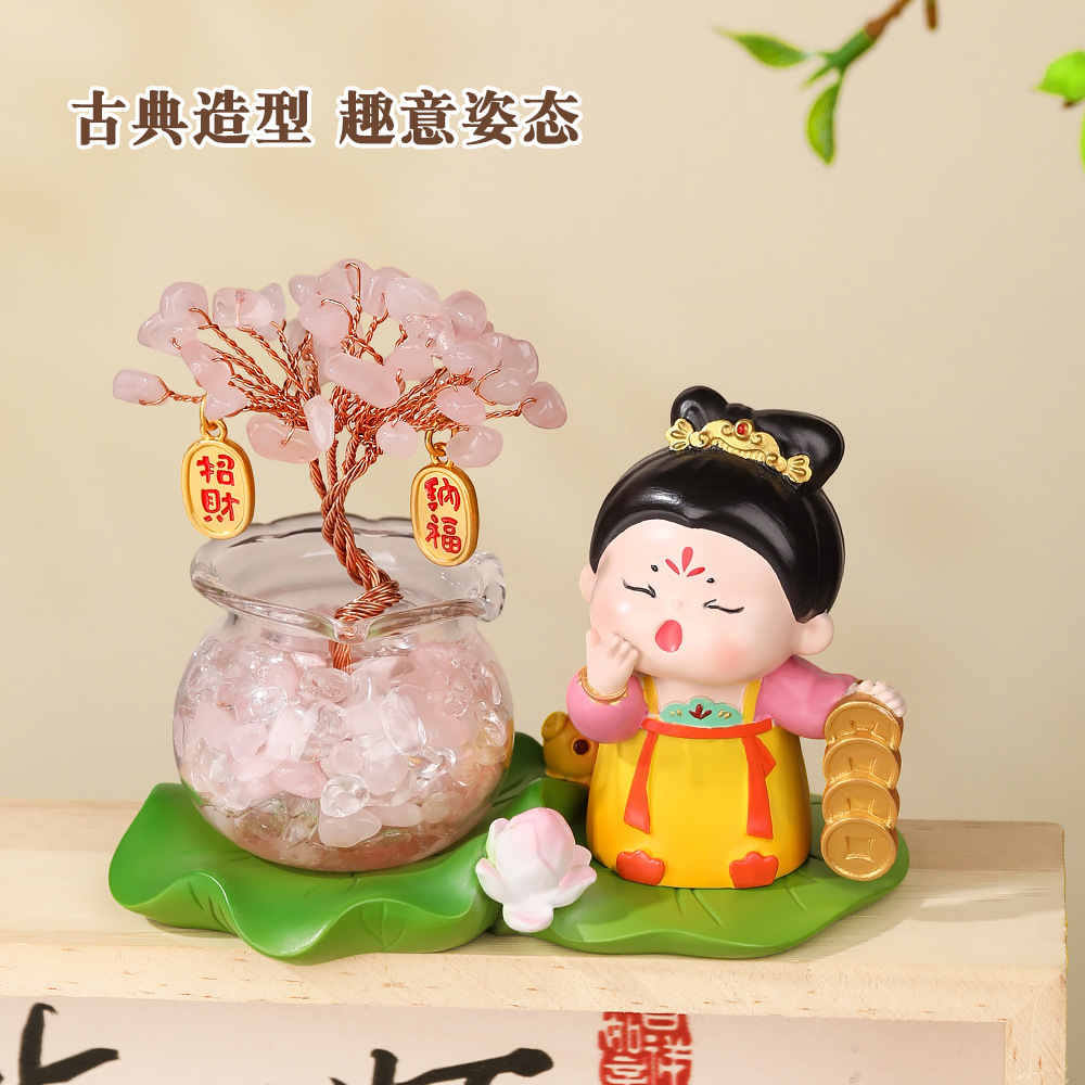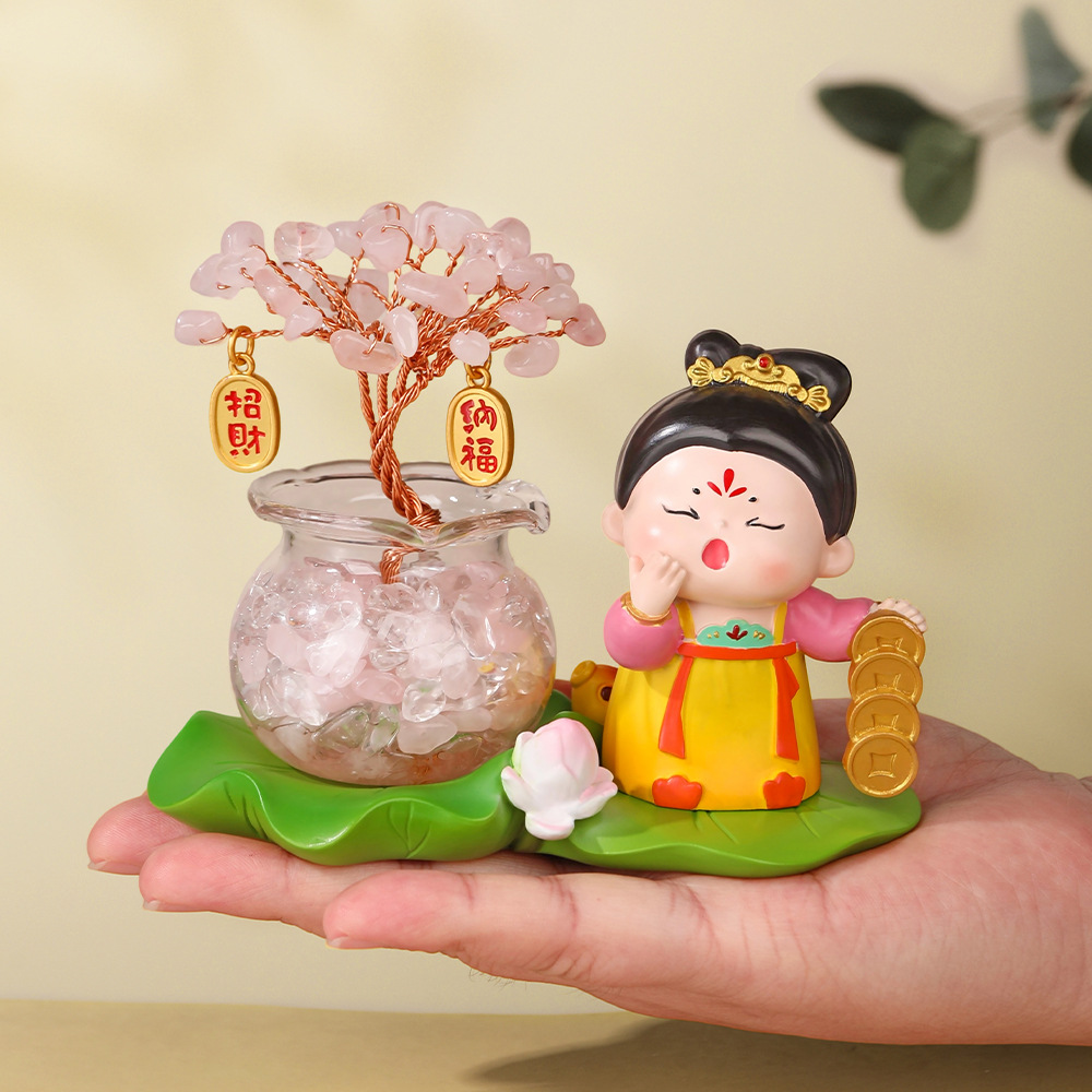 古风才女&水晶发财树荷叶底座摆件家居办公桌面摆饰汽车摆件礼物
