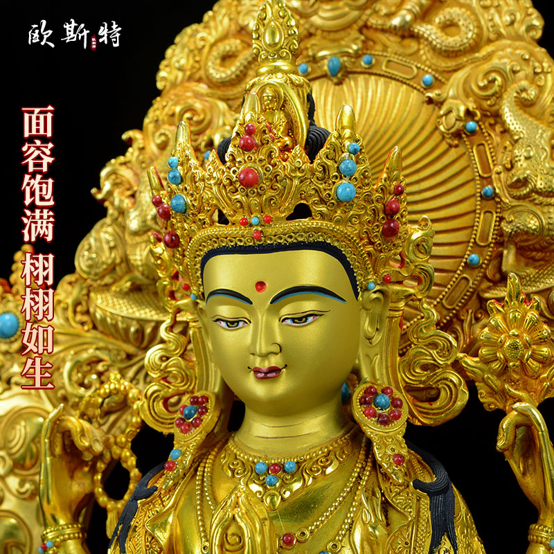 欧斯特全鎏金《四臂观音》室内家用精工铜《观音菩萨》铜佛像摆件