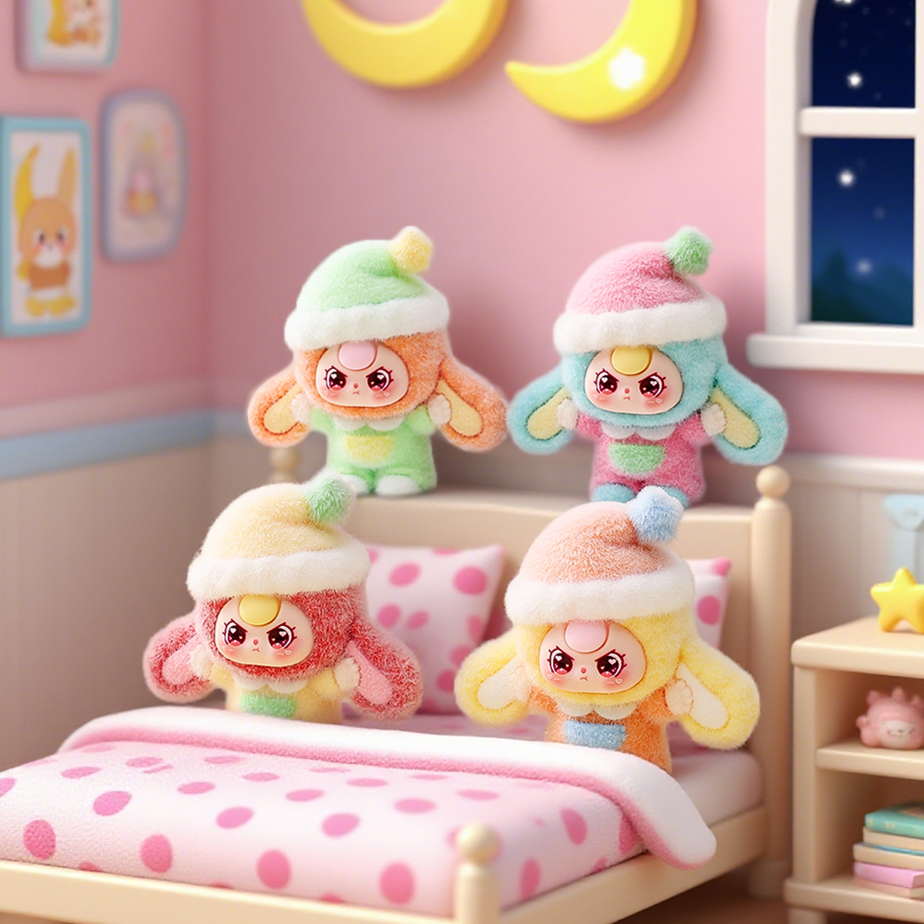 可爱植绒睡衣娃三岁萌粒公仔桌面小摆件潮玩直播盲盒盲袋配件批发