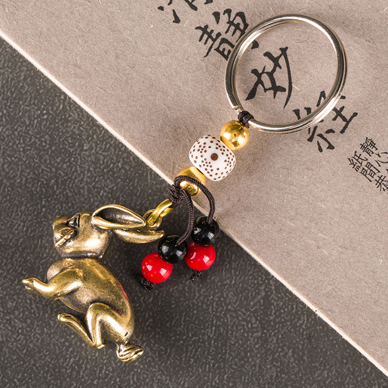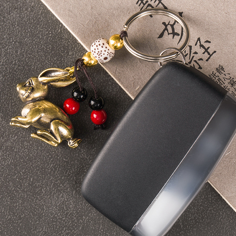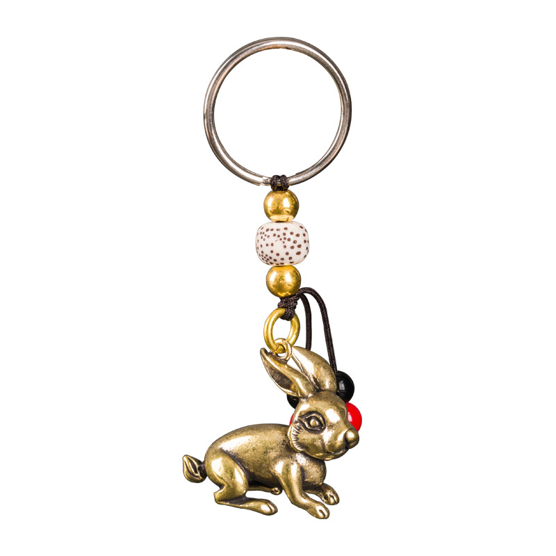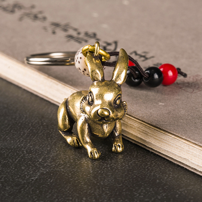 2025年吉祥物玲兔奉1属狗吊坠可爱生肖兔子黄铜钥匙扣挂件饰品