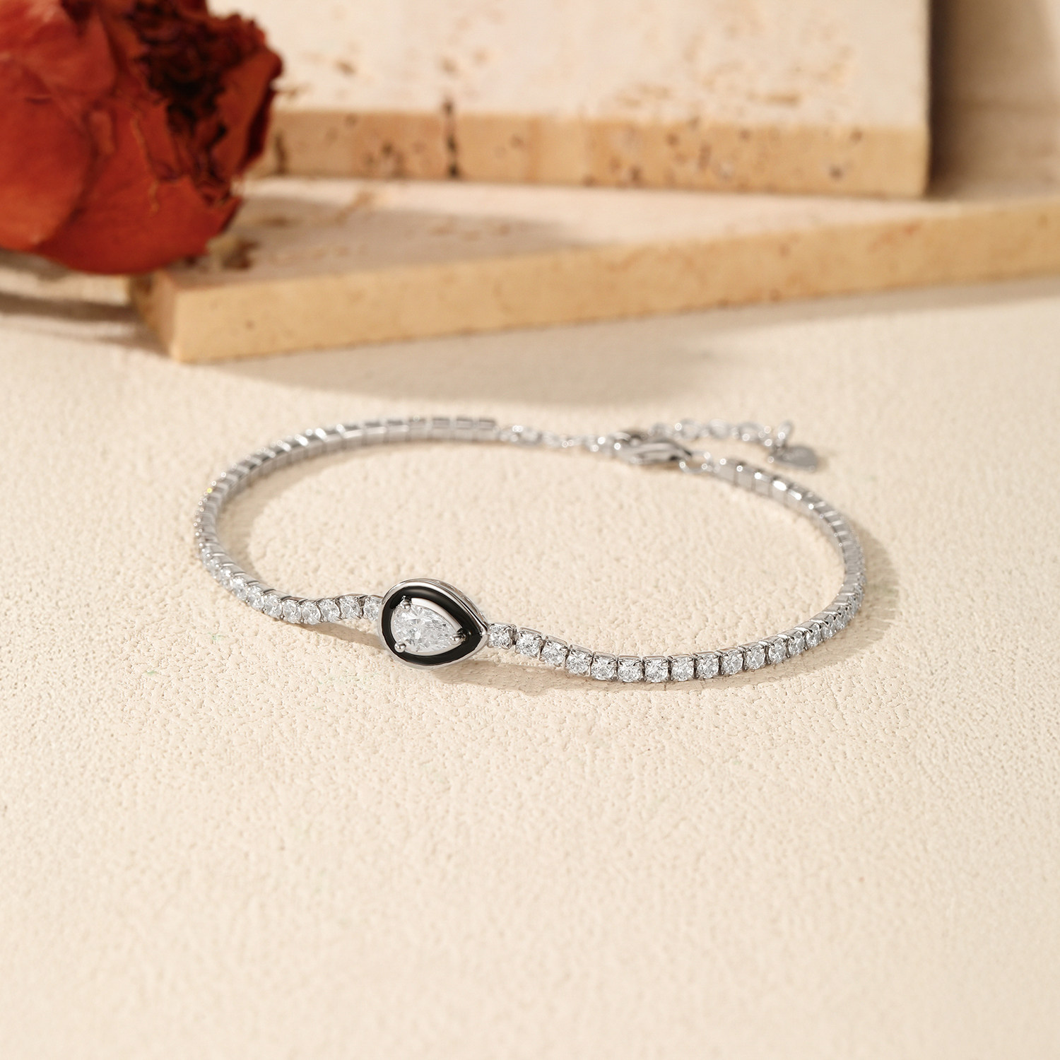 MODIAN摩典S925纯银轻奢黑色珐琅闪钻手链女精致满钻设计感手饰