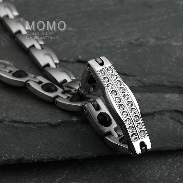 日本正品MOMO纯钛镶钻石保健磁疗正品腕带运动能量手环送女士手链