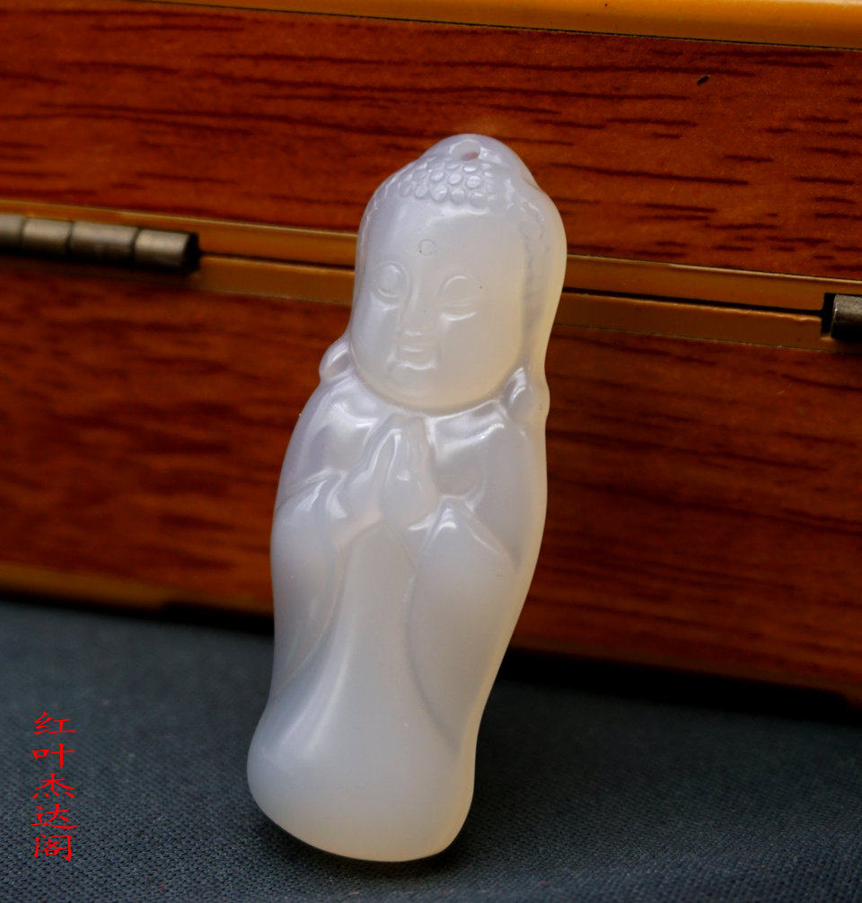 天然冰种玉髓玛瑙宝宝佛吊坠挂件女士小孩立体本命佛玉坠饰品配件