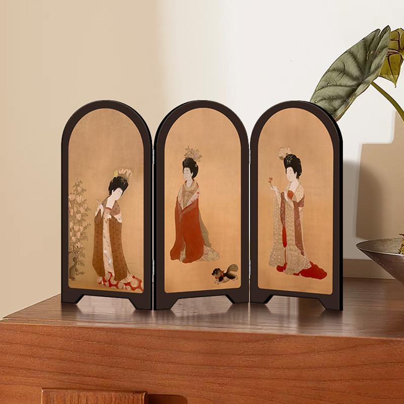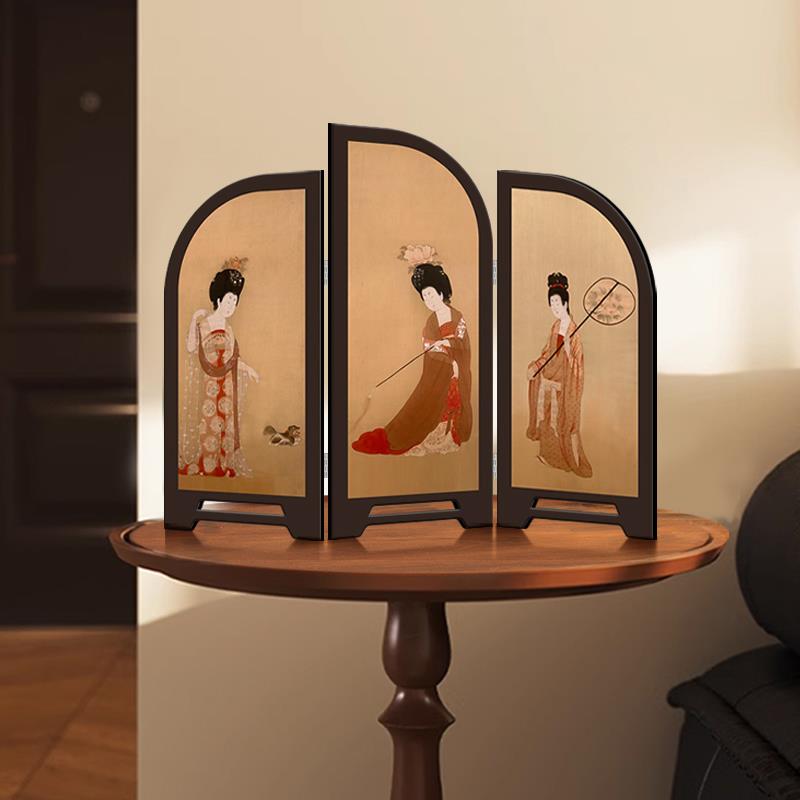 《簪花仕女图》新中式屏风桌面摆件高级感小众中古风卧室玄关装饰