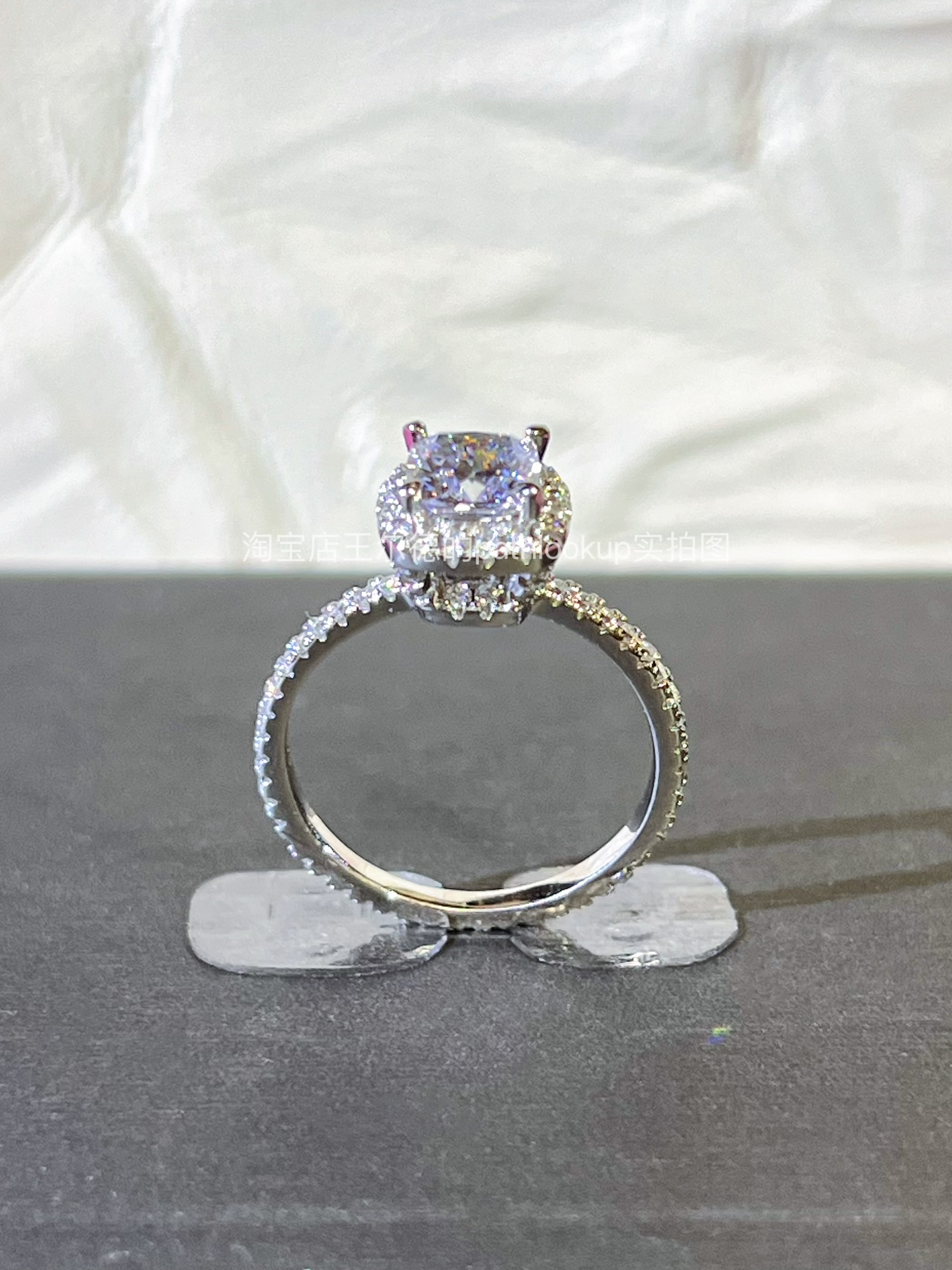 18K金1.25克拉高碳钻石戒指女 豪华精镶满钻结婚订婚钻戒婚礼指环