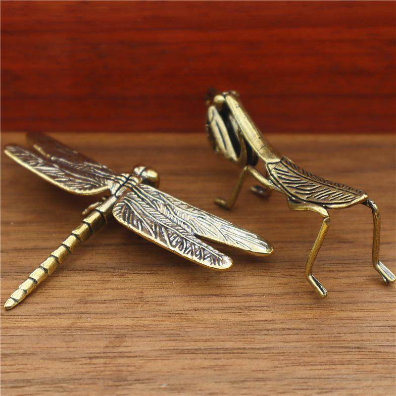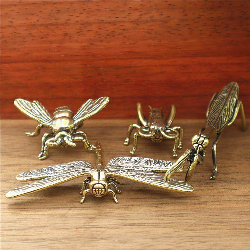 黄铜蜻蜓蟋蟀蜜蜂螳螂昆虫摆件办公室桌面创意虫类茶宠装饰工艺品