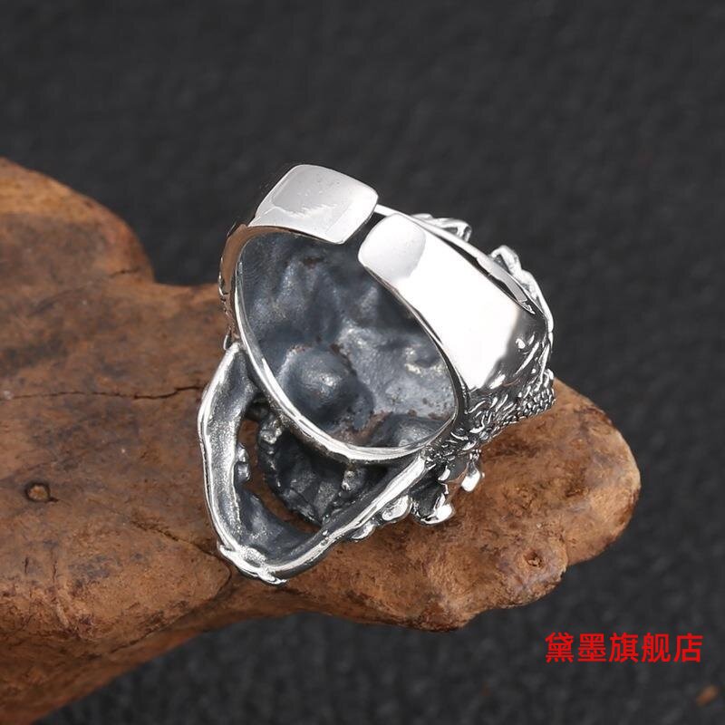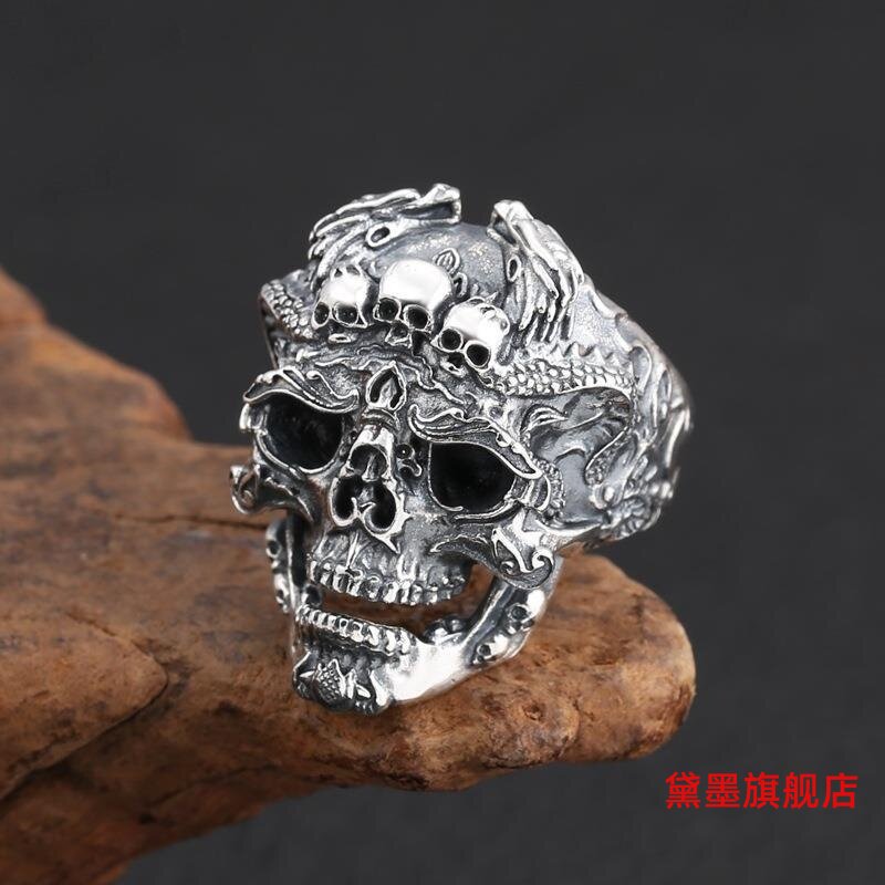 欧美骷髅头开口戒指潮流朋克风复古设计感小众霸气男扳指环配饰品