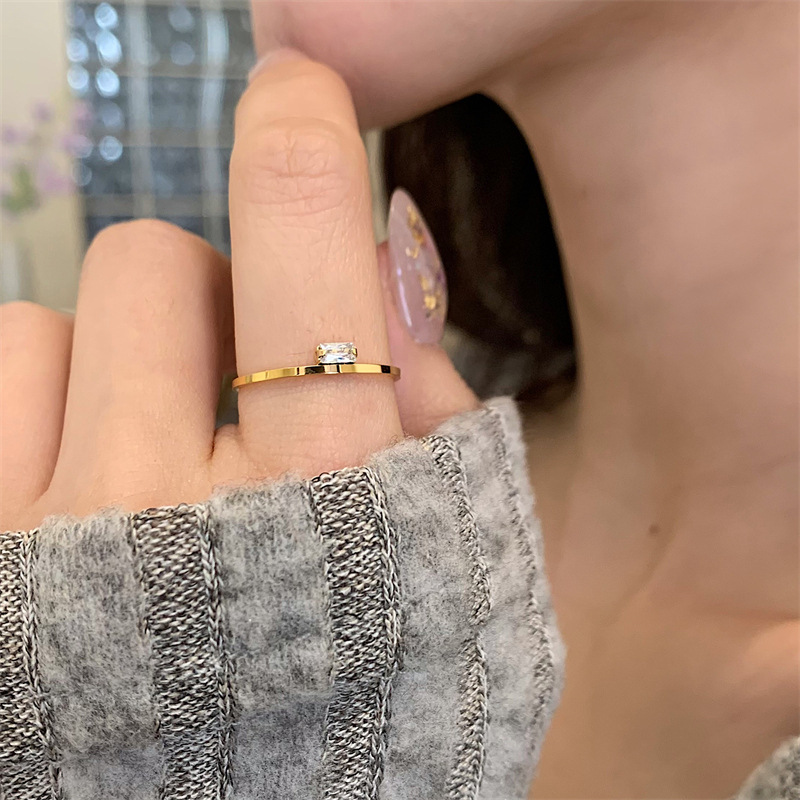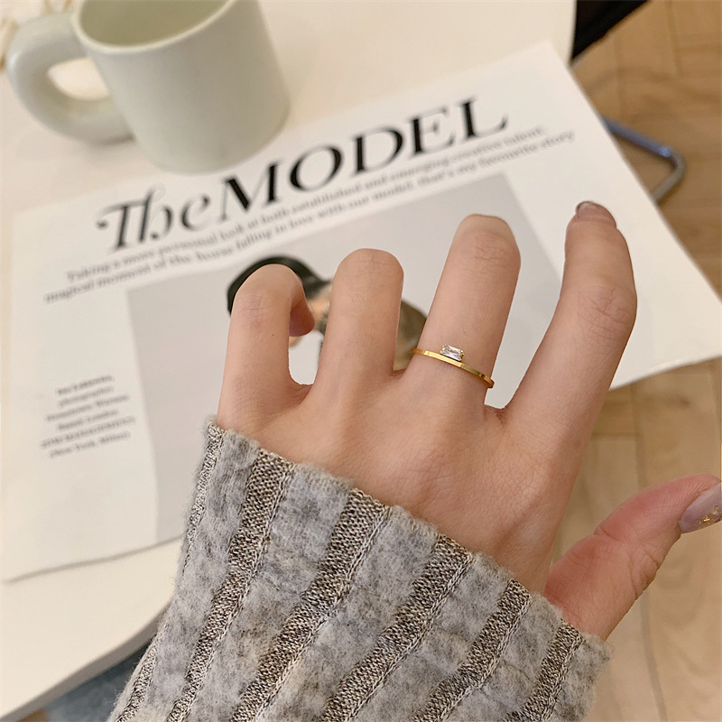 小方钻细款ins个性钛钢镀18K金戒指小巧时尚镶钻指环中指食指简约