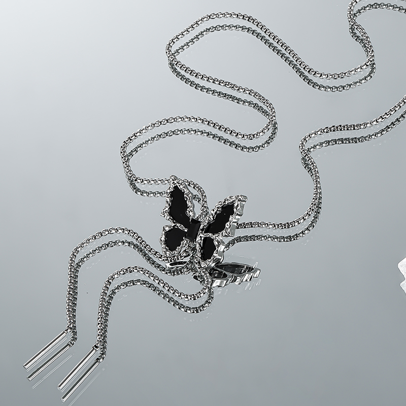 黑色蝴蝶长款可抽拉调节毛衣链秋冬项链配饰女轻奢小众高级感配饰