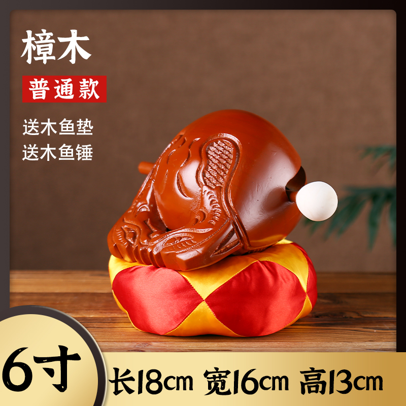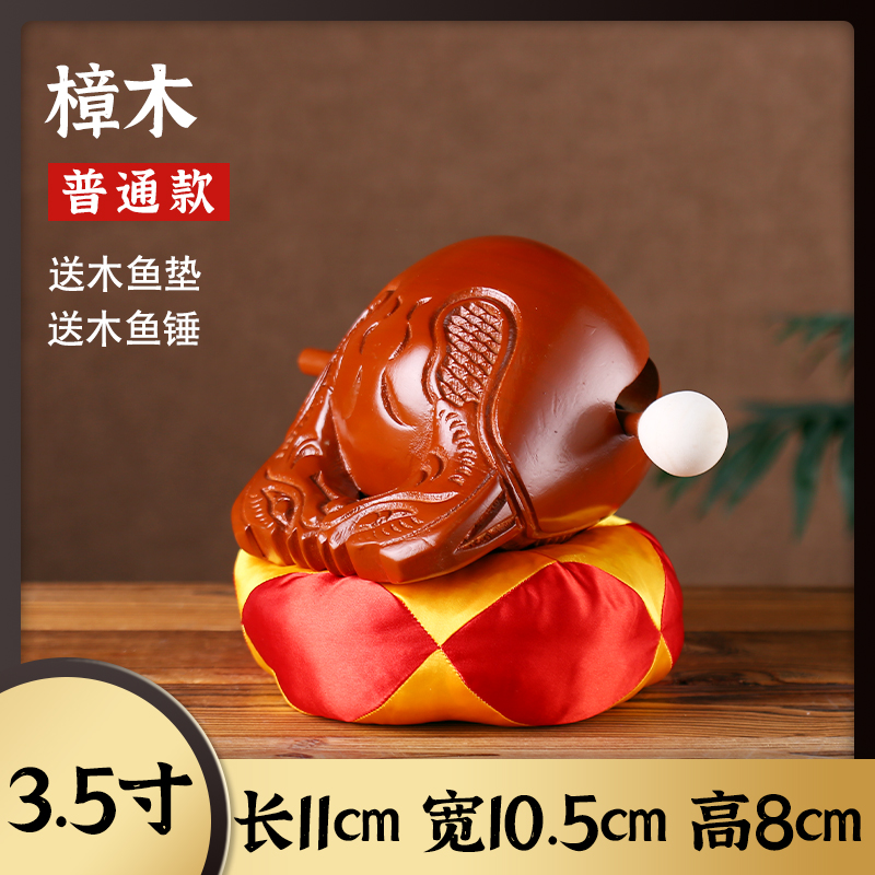 香樟木木鱼法器实木家用一套棒槌垫子老式小木鱼木雕摆件打击乐器