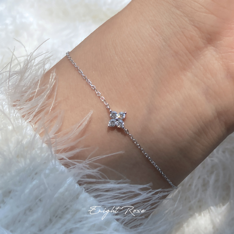 如意玫瑰/925纯银四叶草手链简约气质单钻镶钻锆石手饰叠戴闪亮女