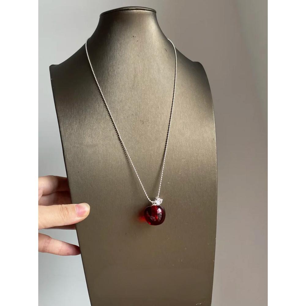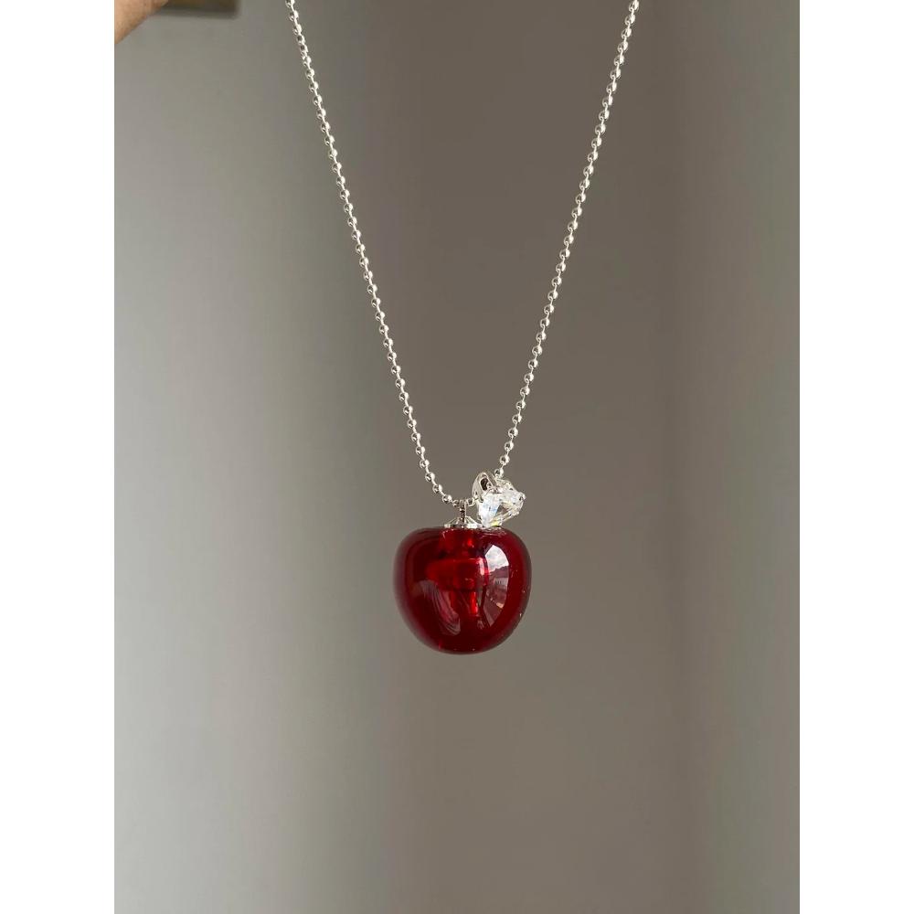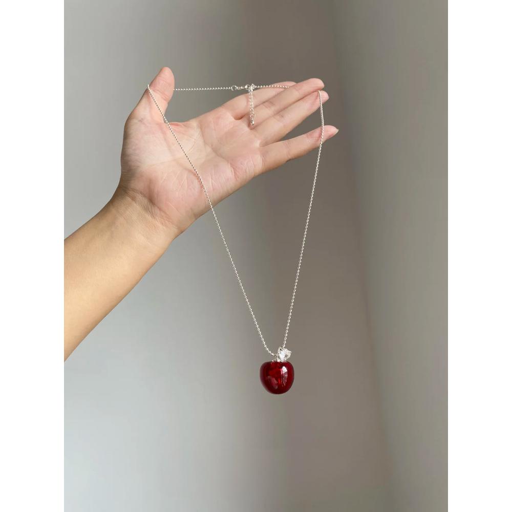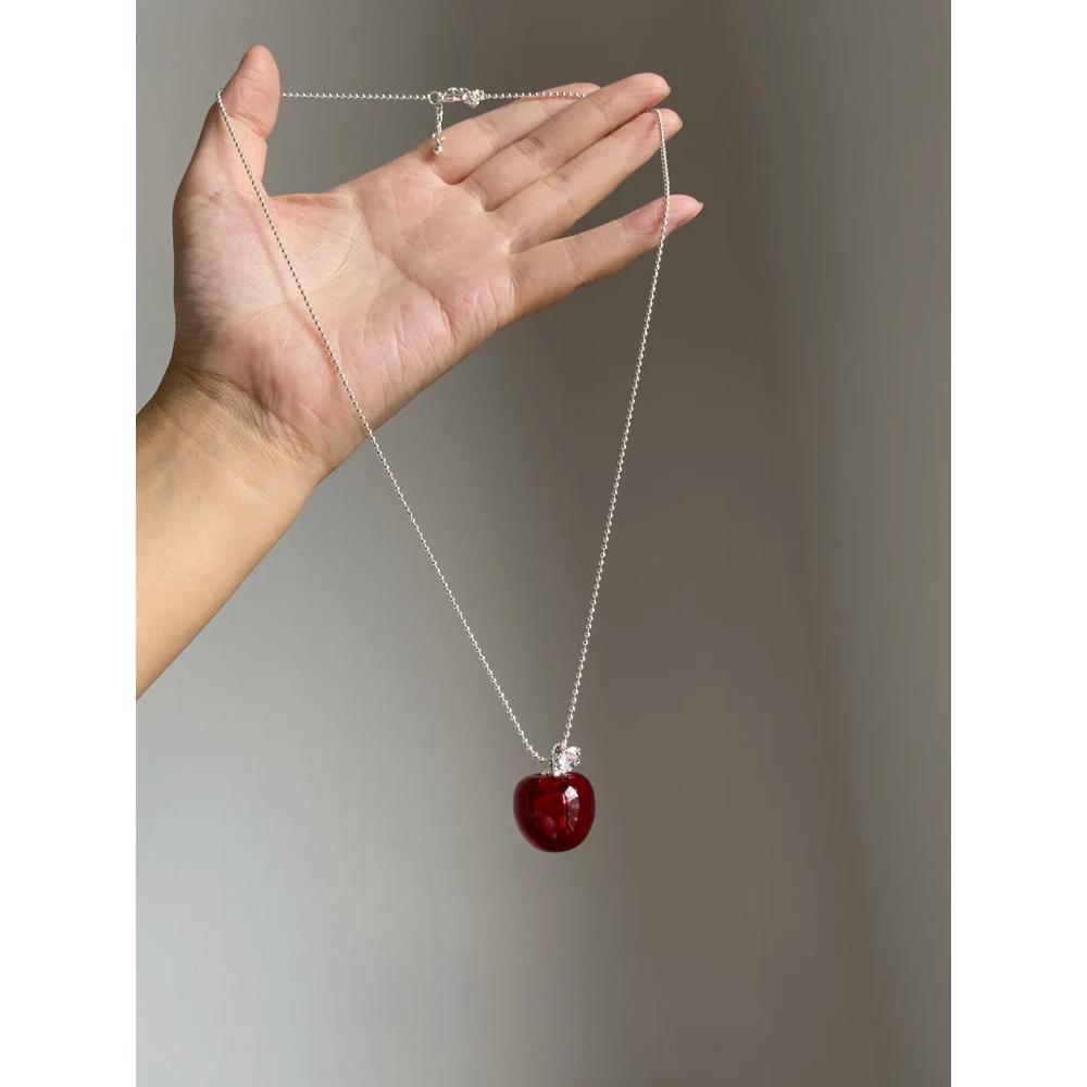 甜美可爱仿红水晶苹果吊坠项链高级感轻奢小众毛衣链秋冬复古配饰