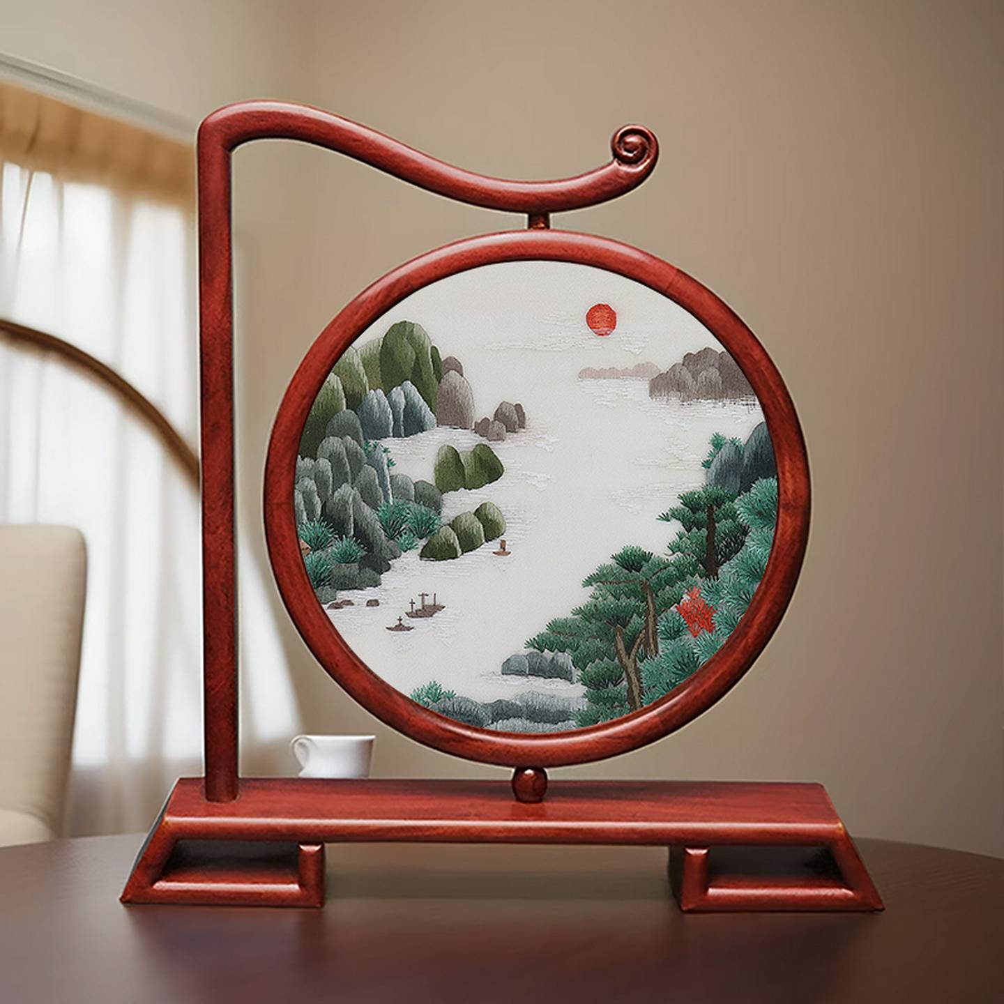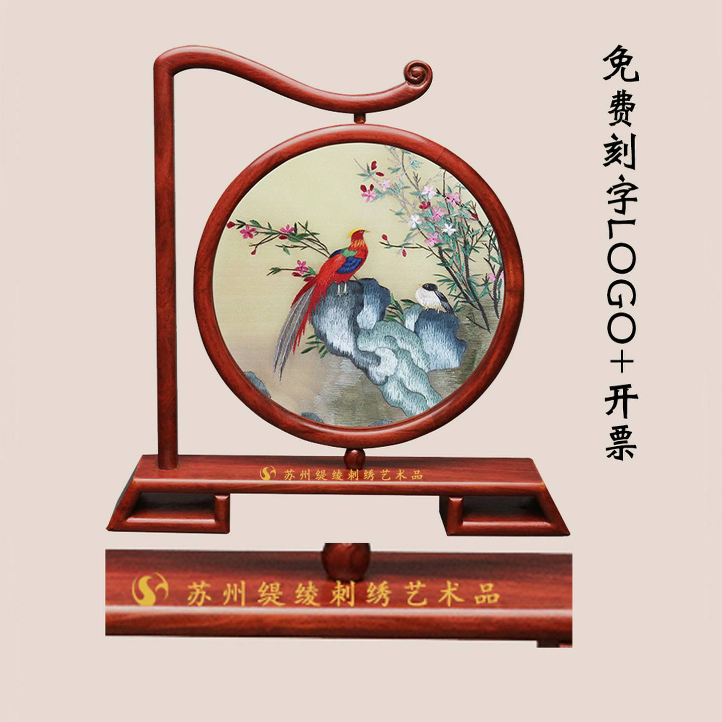苏绣摆件手工刺绣双面绣屏风客厅玄关装饰品结婚礼物送礼品摆台