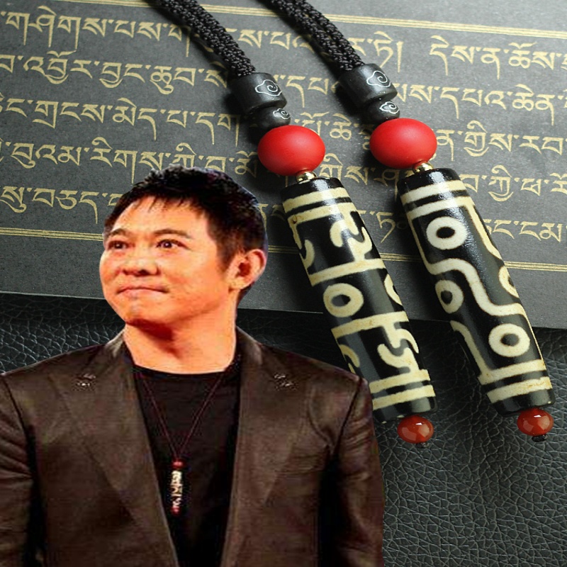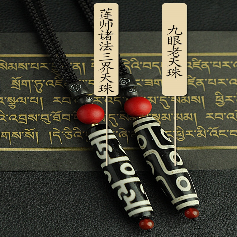 西藏莲师诸法三界把天珠明星同款天珠项链吊坠九眼马蹄朱砂天珠
