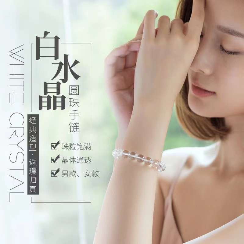 白水晶手链女巴西散珠情侣白色珠子转运水晶手串男女手串