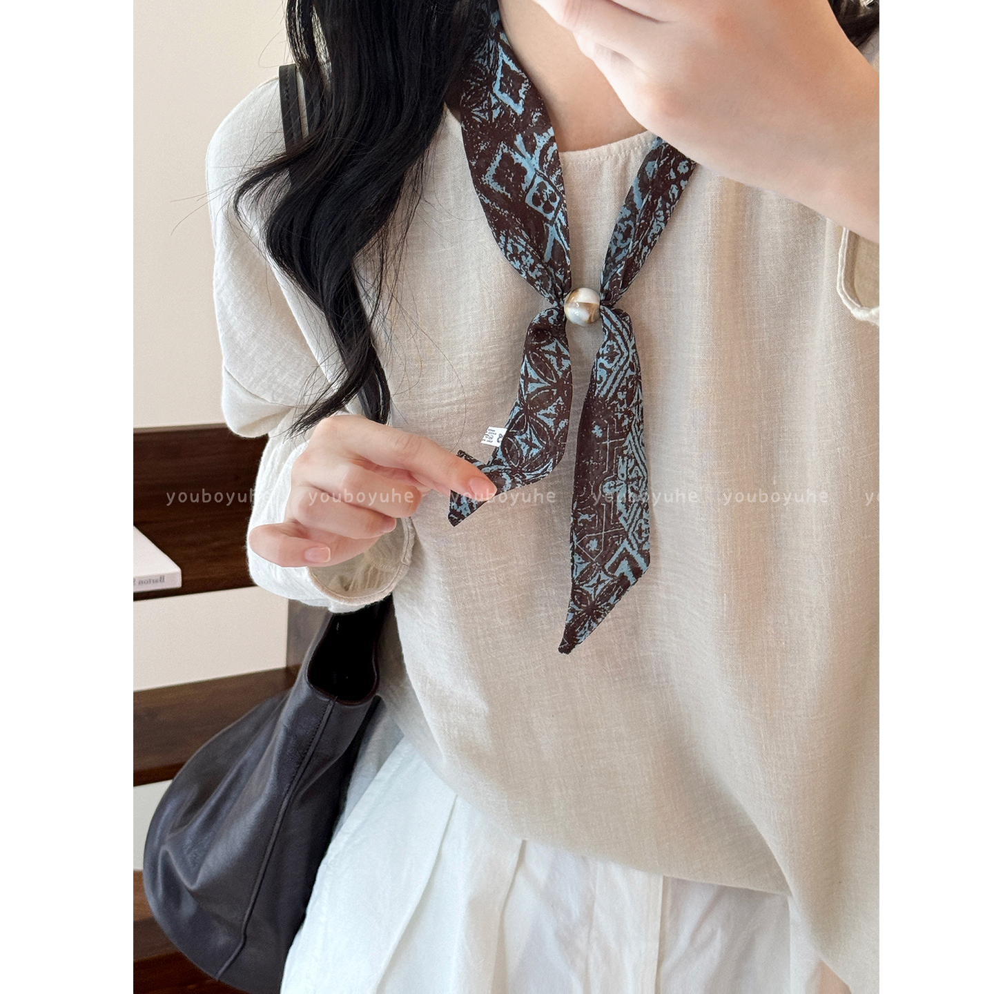 复古印花串珠丝巾项链女高级感日常百搭毛衣链设计感小众时尚配饰