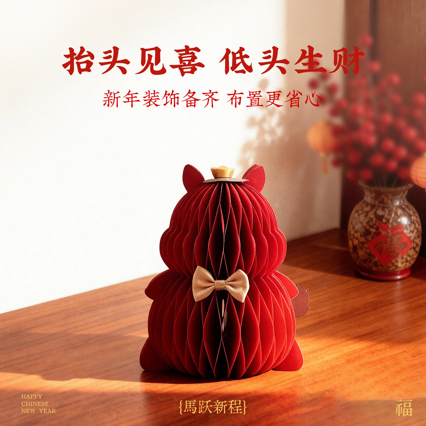 新年装饰好物氛围布置2026新款生肖马年折纸马立体桌面红色摆件