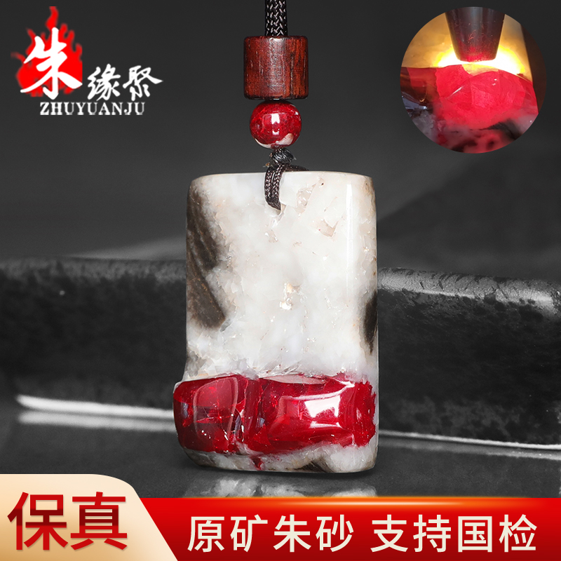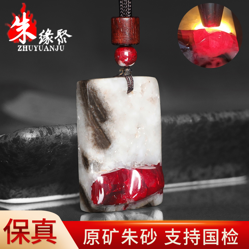 朱缘聚朱砂吊坠女士正品官方旗舰店原矿晶体石全透光无事牌挂件男