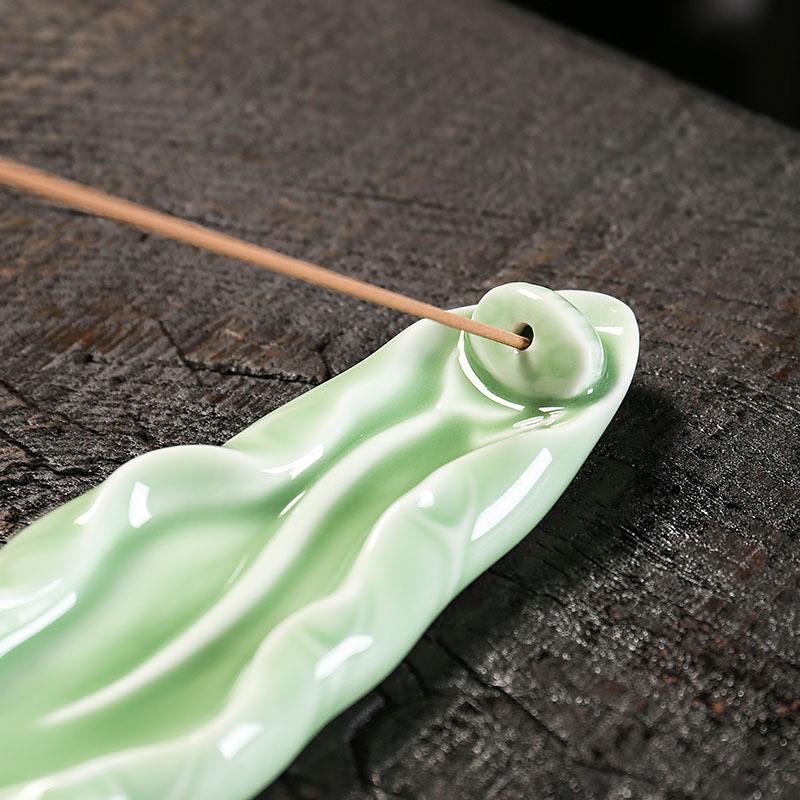跨境青瓷香插香薰炉 创意荷叶卧香炉线香座香插家用饰品摆件定制