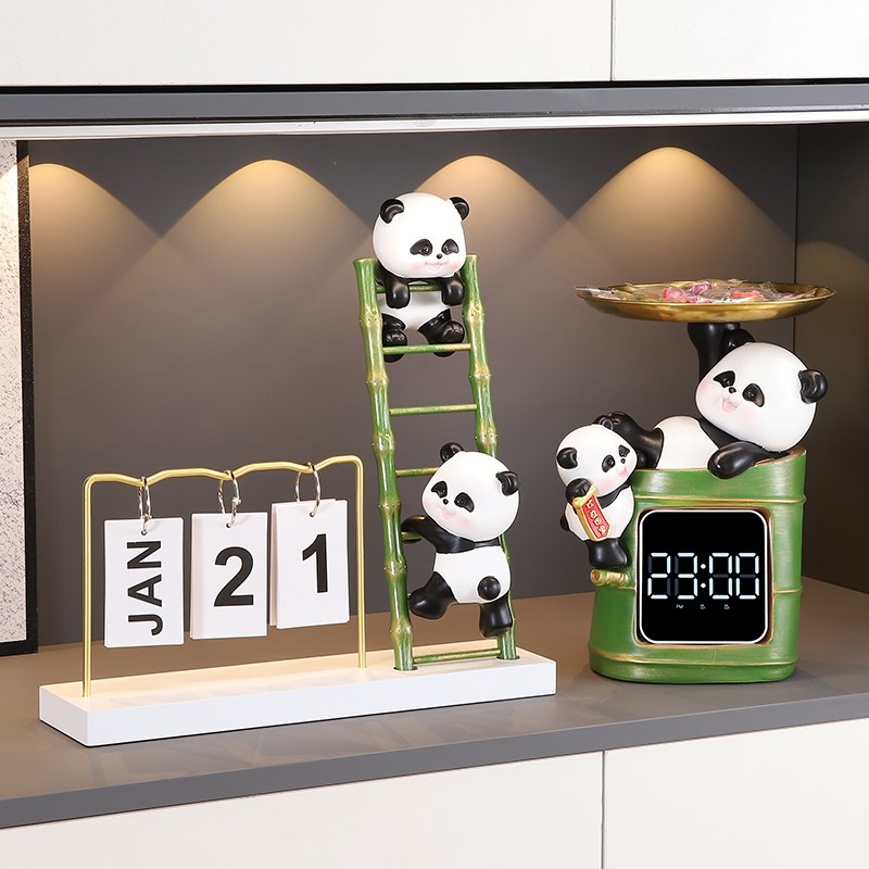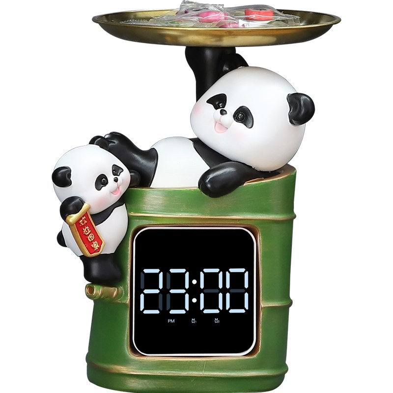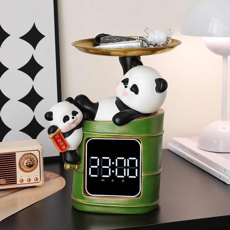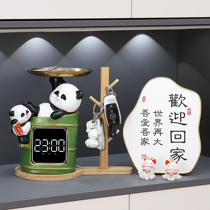 熊猫入户钥匙收纳玄关摆件桌面时钟表摆台式客厅小众高级感装饰品