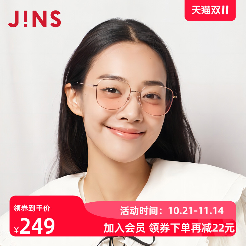 JINS睛姿时尚金属方框复古甜美粉色腮红眼镜平光素颜镜LMF22S148
