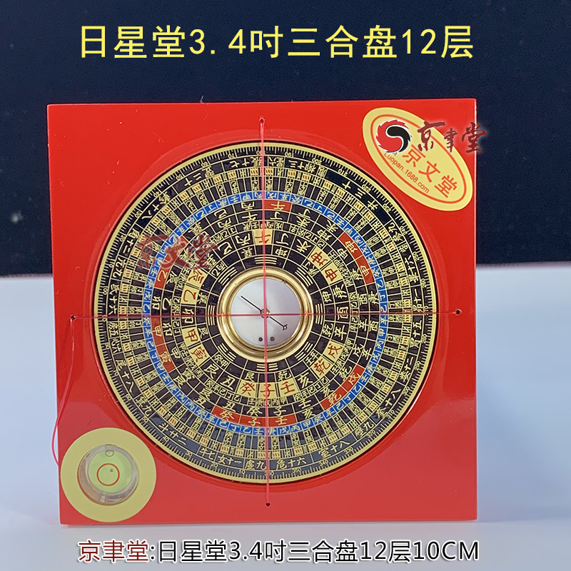 京聿日星堂罗盘罗经罗庚盘3.4寸10CM三元三合综合盘原销台湾香港