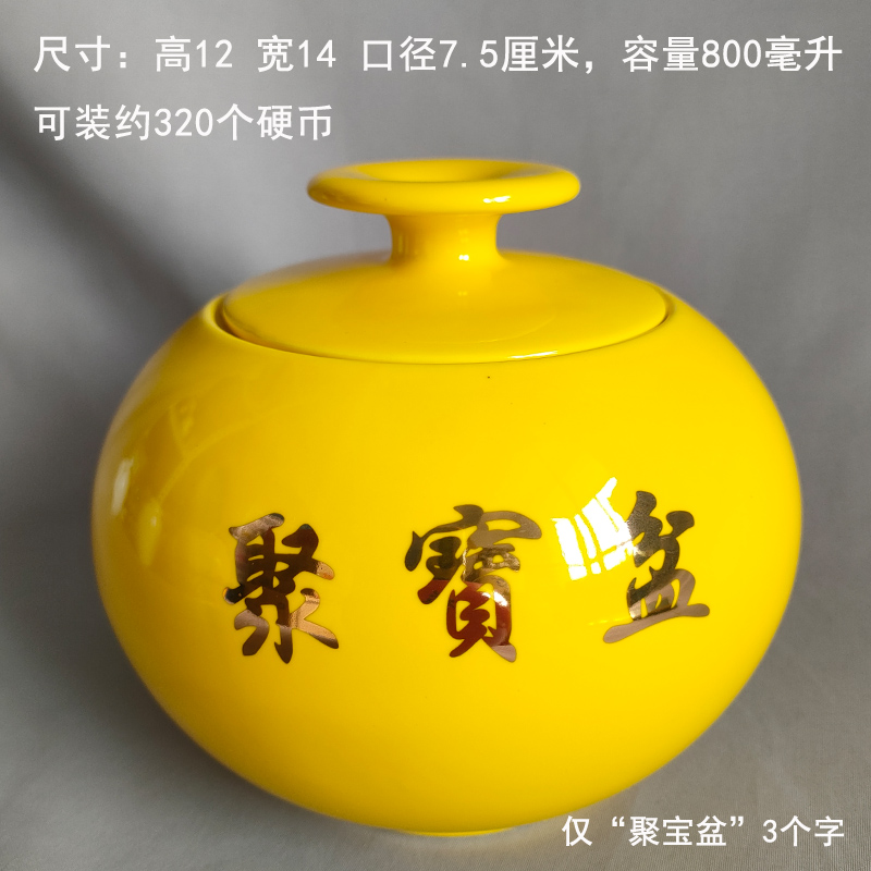 多款中号大号聚宝盆带盖陶瓷罐子招财摆件风水布局瓷器铜钱金元宝
