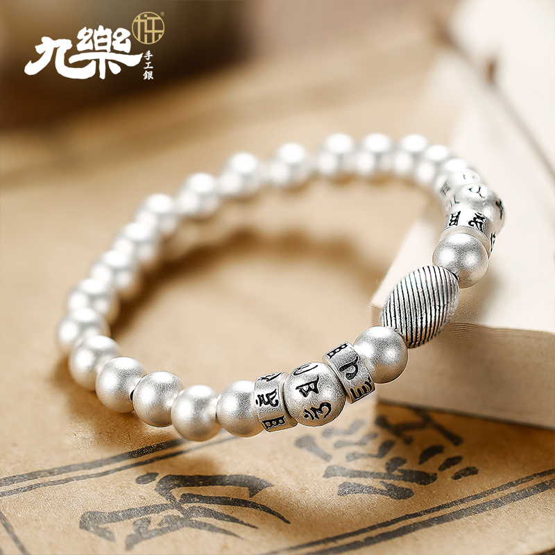 九乐999六字真言纯银圆珠手链男女情侣款复古小众编织手串送女友